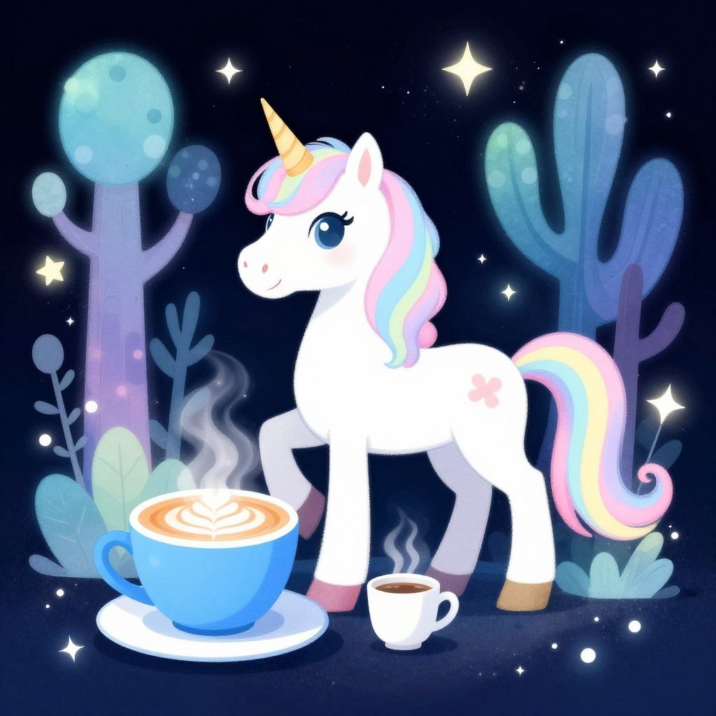 Pastel Unicorn with Cosmic Coffee