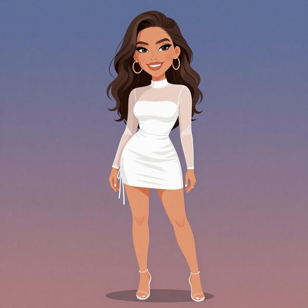 Woman with pretty face and pretty hair. smiling Woman, glamorous evening wear, champagne satin slip dress, cowl neckline, spaghetti straps, thigh-high slit, draped waist detail, strappy high-heeled sandals, statement drop earrings, sleek high ponytail, minimalistic setting with light backdrop. --sref 1467