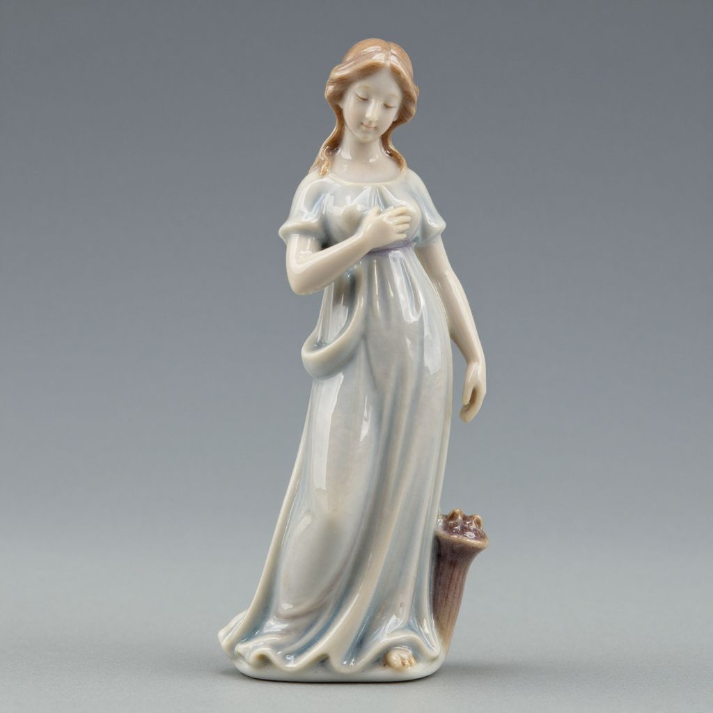 A delicate Lladró porcelain figurine titled \"Wonderful Mother,\" crafted with meticulous attention to detail, features a serene woman in a flowing gown, exuding elegance and warmth through its high-definition craftsmanship and soft, naturalistic portrayal.