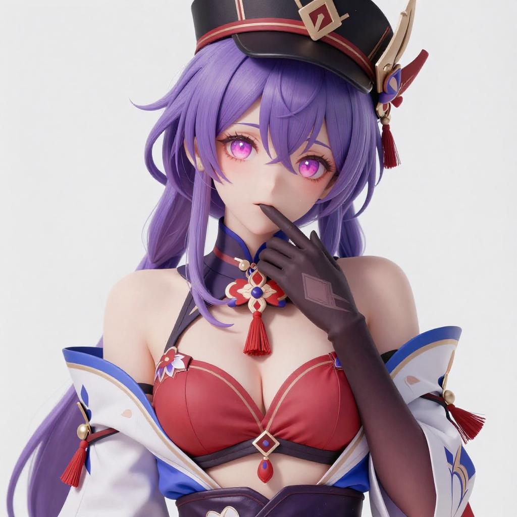 Digital artwork of an anime-style character with silver hair, blue eyes, and a white and blue outfit, sitting on a reflective surface. The character holds a red object in their right hand, with a lantern and traditional Japanese-style window in the background. The character's legs are bent, and their expression is slightly curious.