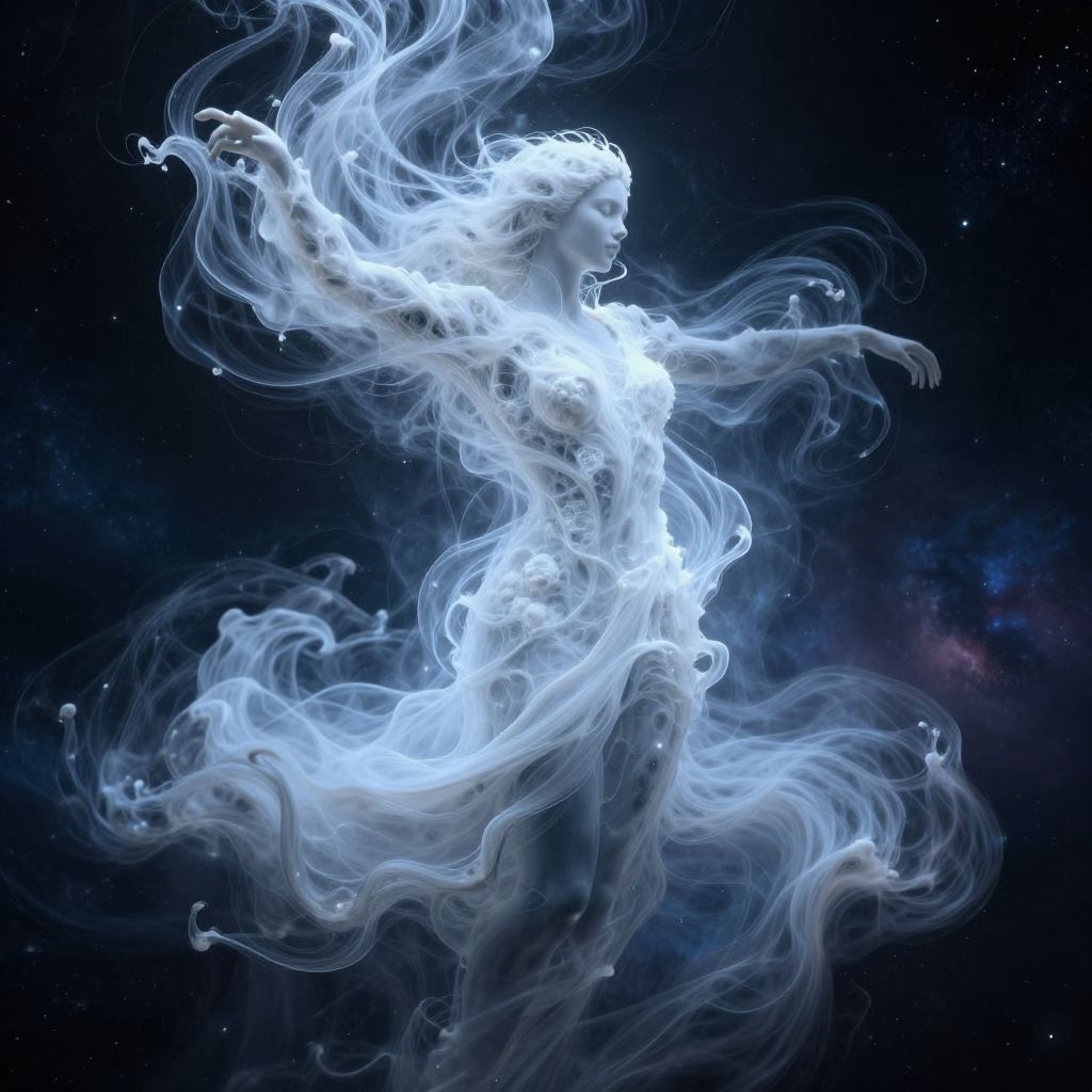 Hyperrealistic art Transmutative Condensation Graceful Transition from Fluidity to Solidity: The transmutative condensation manifests gracefully, transitioning from fluidity to solidity with fluid firmness. As the essence condenses further, it transforms into a solid state, gradually materializing tangible form within the cosmic expanse. This metamorphosis imbues the surroundings with a sense of freezing solidity, blurring the boundaries between fluid and solid states of being. This graceful transition captures the essence of a transcendent transformation, where the fluid essence solidifies in a seamless materialization of cosmic evolution. Materializing this transmutative process, the universe experiences a profound shift, as it embraces the solidifying essence and the boundless possibilities it holds. Each transition becomes a solid matter, guiding the evolution of the materializing universe towards new horizons of cosmic vitality and renewal. . Extremely high-resolution details, photographic, realism pushed to extreme, fine texture, incredibly lifelike