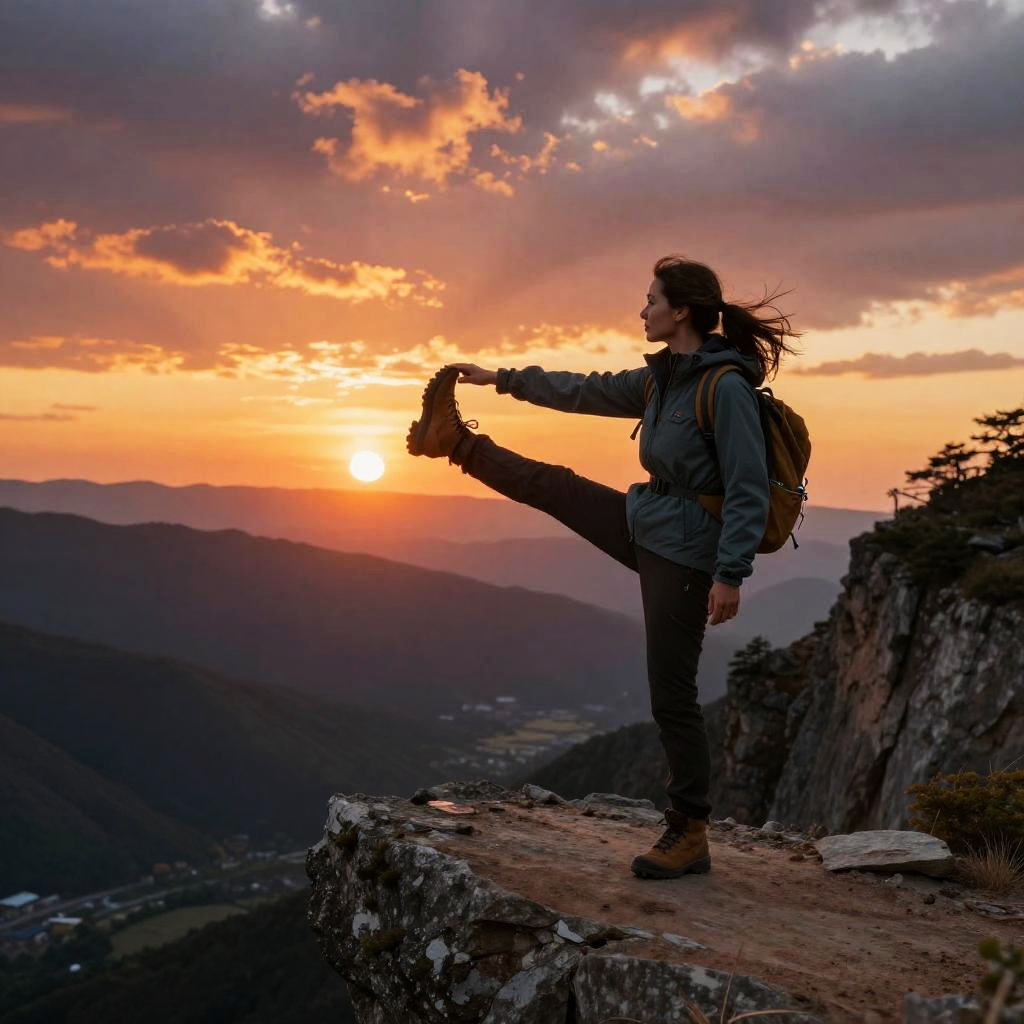 Silhouetted rock climber, reaching for a hold, against a vibrant sunset with orange and pink hues, on a rugged cliff.
