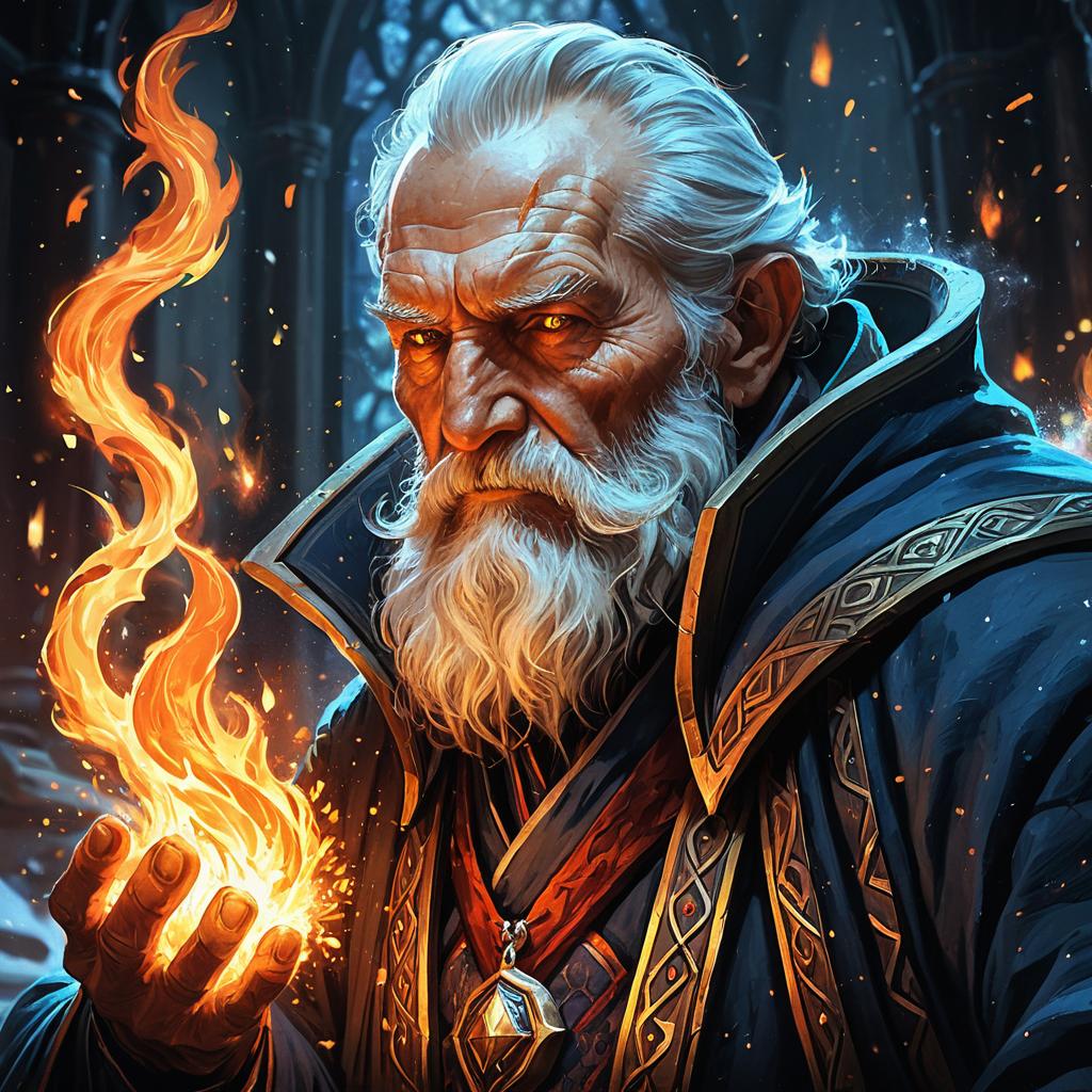 Elderly Necromancer in Fiery Elegance