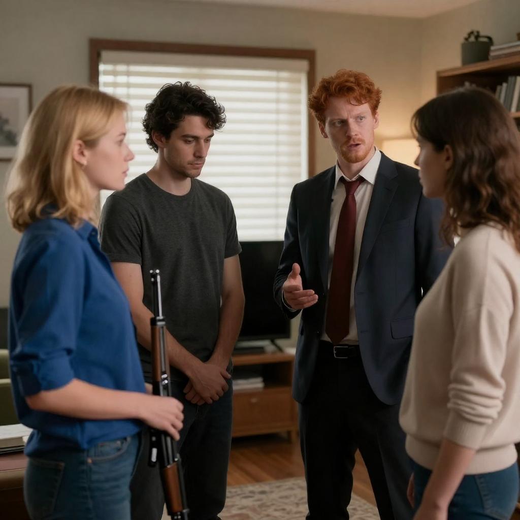 Photograph of a protest. Man with short brown hair in light beige suit, unbuttoned shirt, standing beside a woman with curly hair in floral dress. Both holding signs. Crowded background, diverse people, serious expressions. Warm indoor lighting.