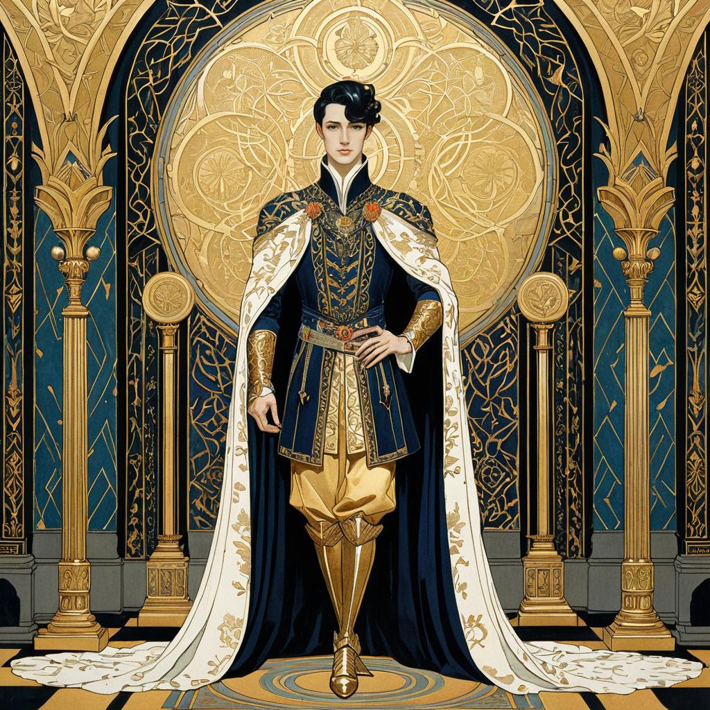 Beautiful prince, male, gold, full body portrait, fantasy, detailed, smooth, sharp focus, art by finnian macmanus, ayami kojima, anato finnstark, ruan jia, cedric peyravernay, joseph leyendecker, peter mohrbacher, marc simonetti, victo ngai, virginia frances sterrett, kay nielsen