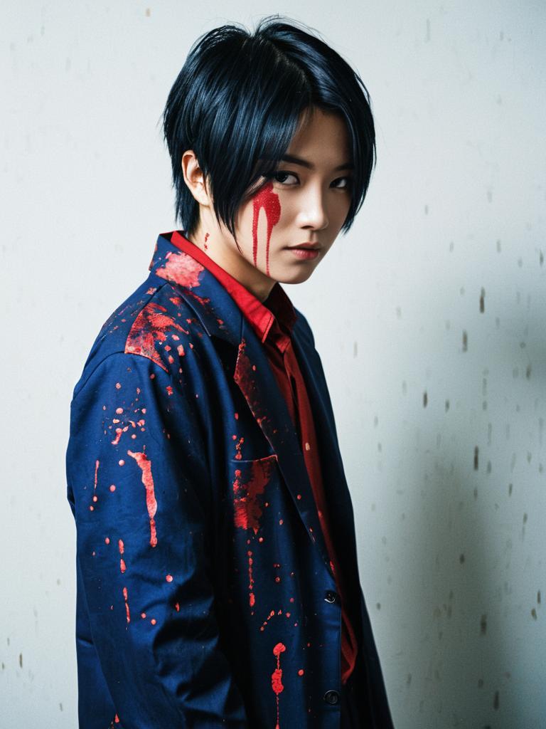 Young man in Chizome Akaguro cosplay costume