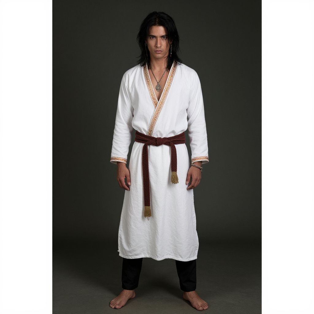 "pedi traditional attire, solo, 1boy, male focus, black hair, jewelry, long hair, blood, standing, full body Realistic photo of casual sexy person with pretty face"