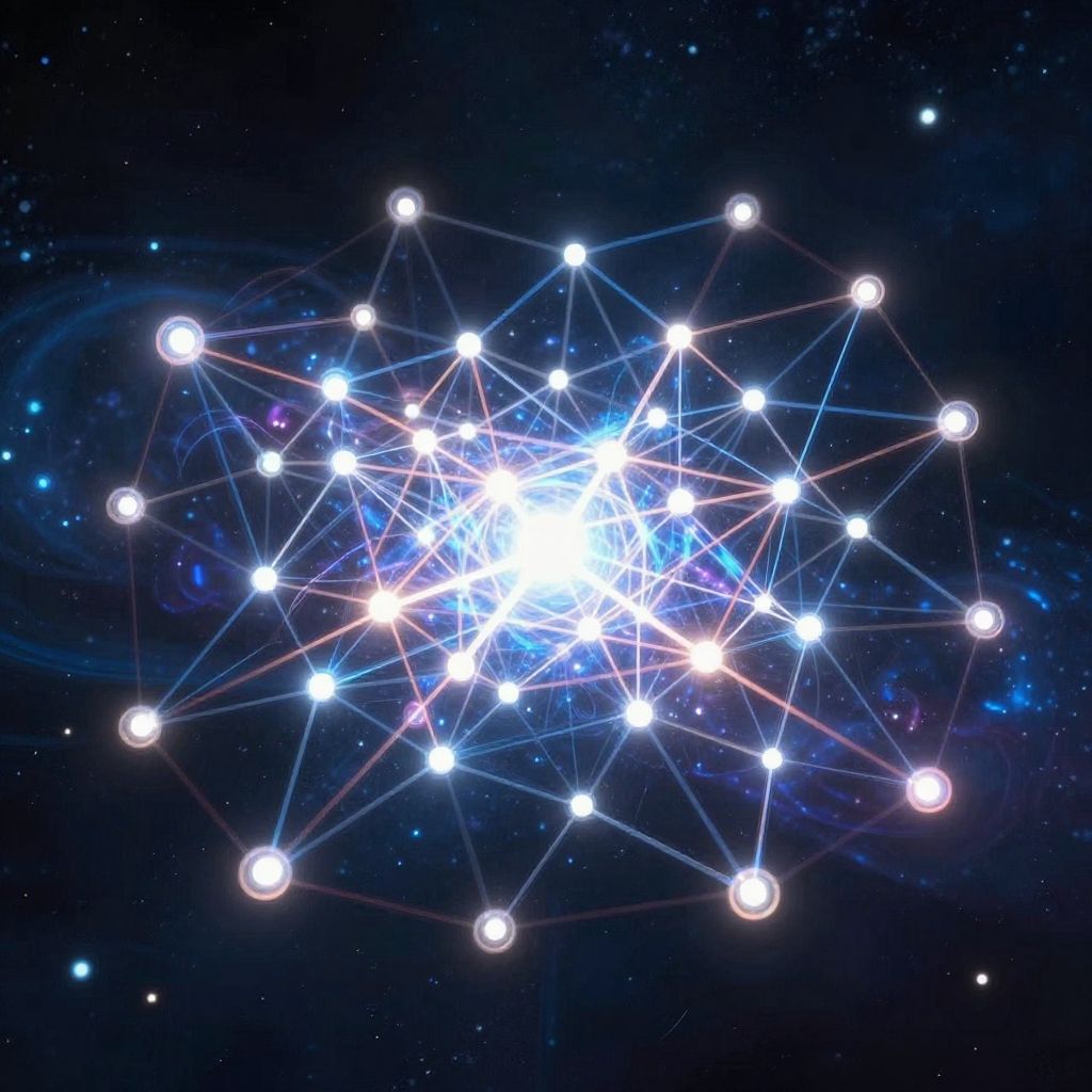 Cfg scale stable diffusion data network, intricate web of glowing nodes connected by light beams, deep space background, pulsating energy, sci-fi theme with detailed futuristic elements