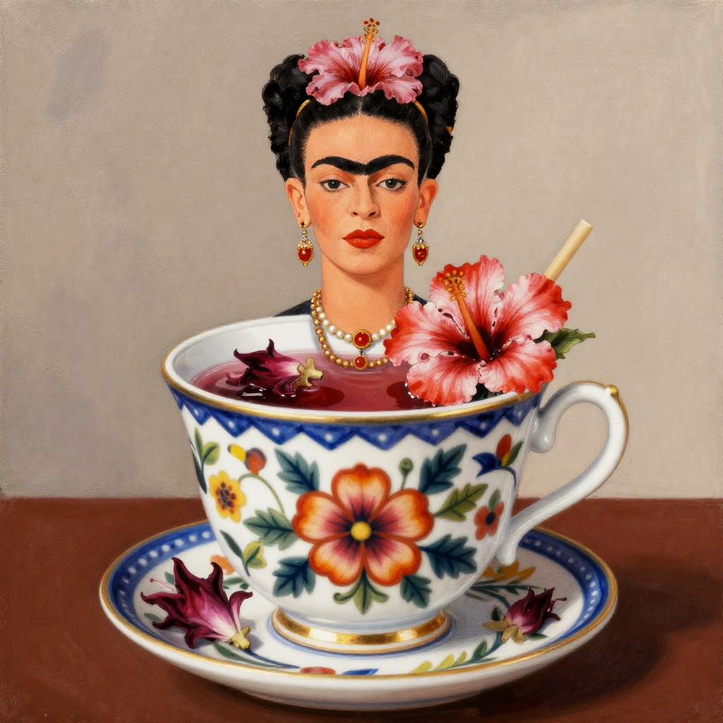 Contemplative Frida-Inspired Polka-Dot Landscape Portrait