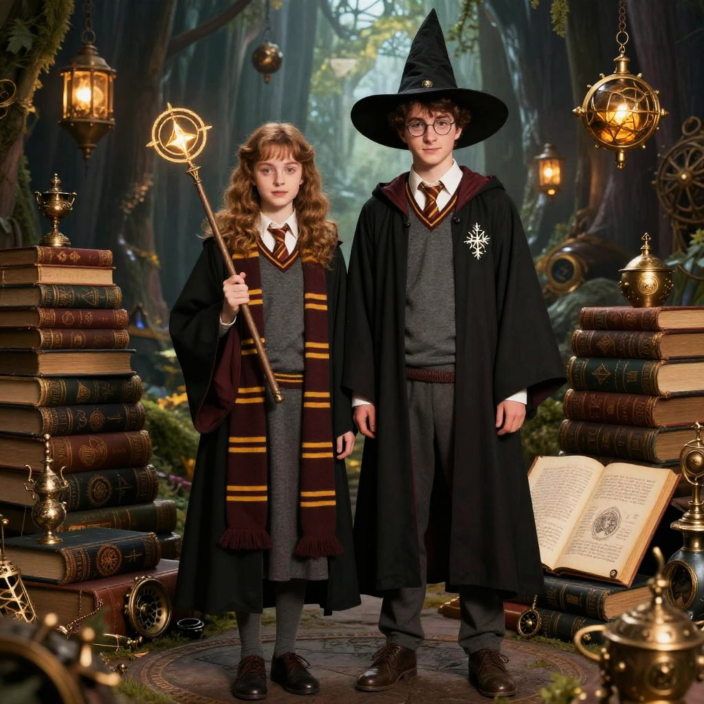 Realistic photo.A full-body portrait of a charming, witty red-haired male wizard, flying with a flowing green robe adorned with silver runes, background of a mystical forest with twinkling lights, illustrated by Artgerm, highly detailed, vibrant, dynamic composition realistic photo