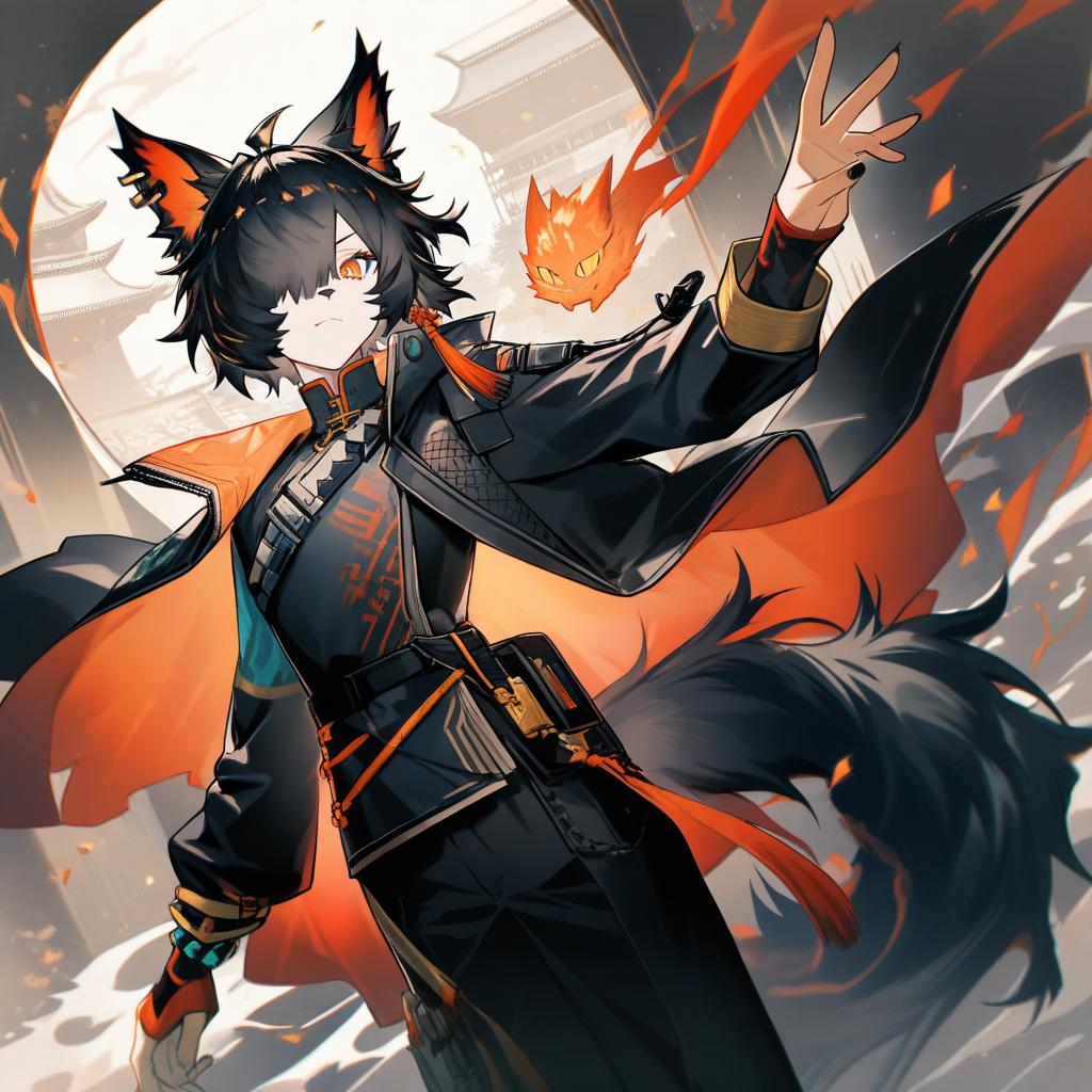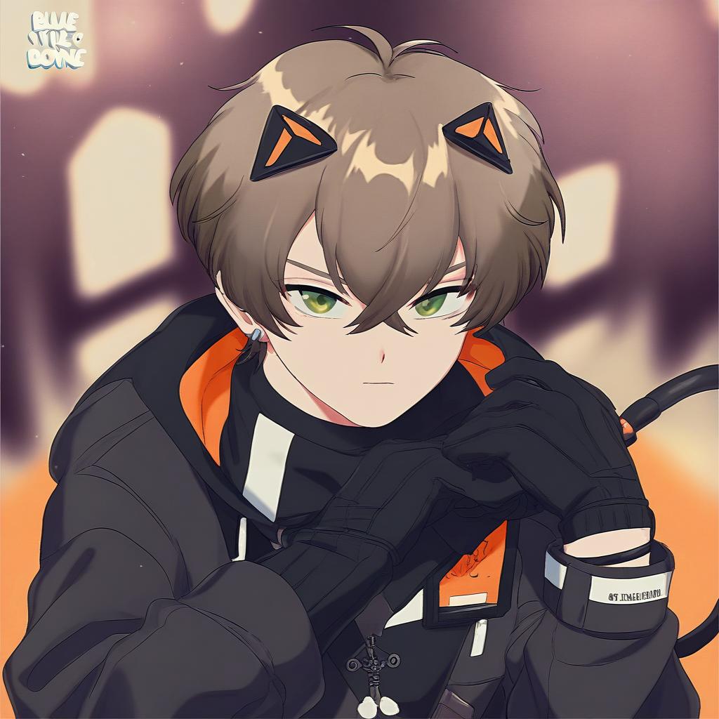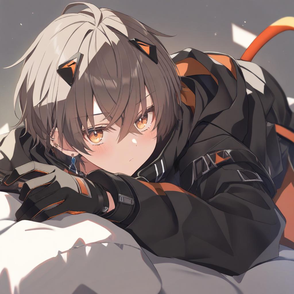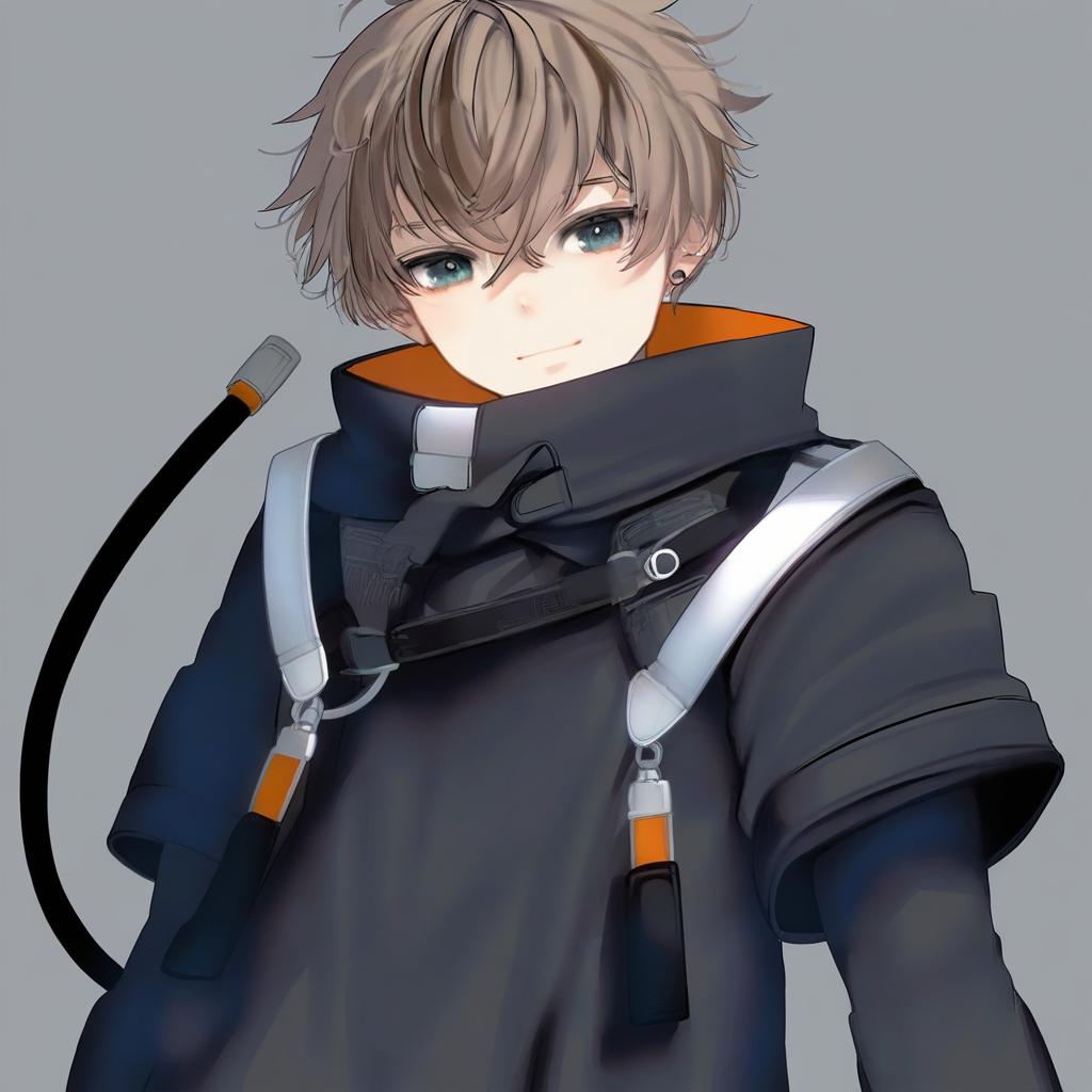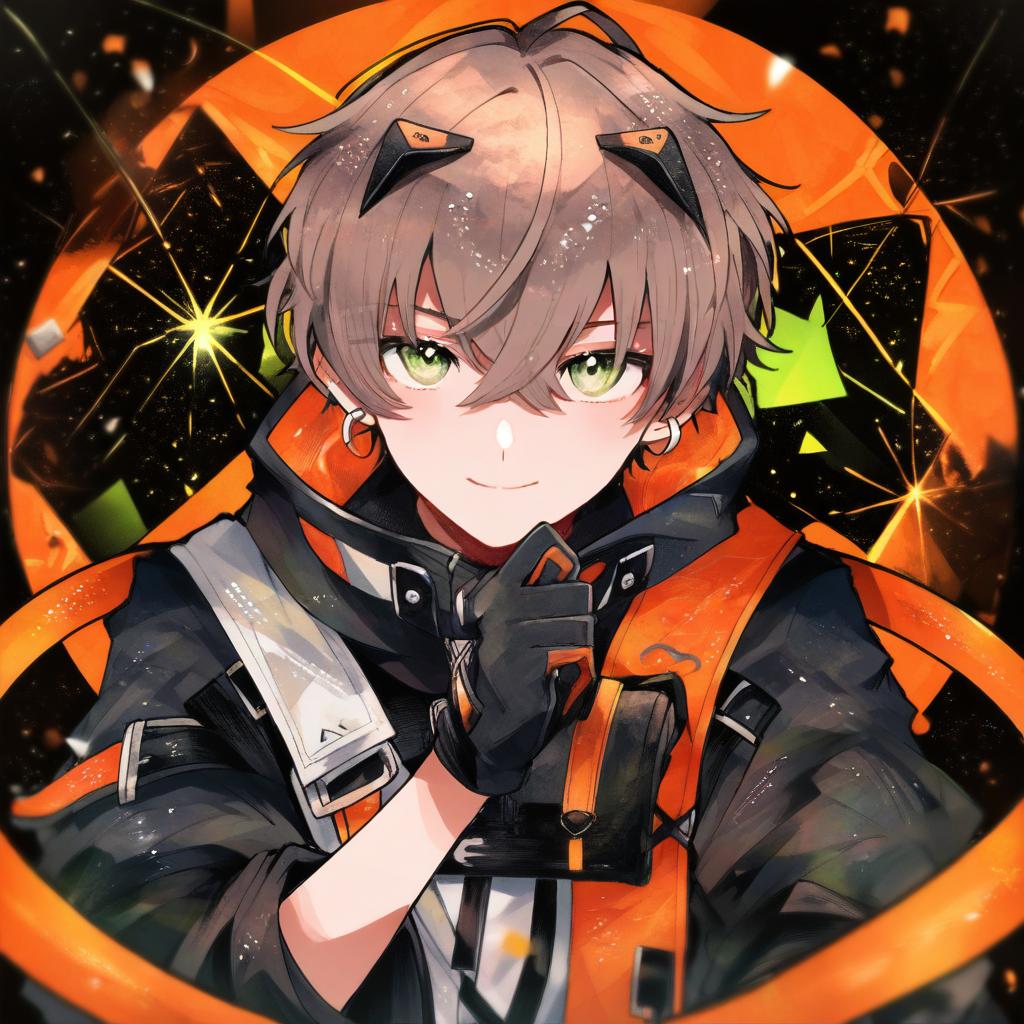 Alban knox, nijisanji, 1boy, heterochromia, cable tail, hair between eyes, grey eyes, green eyes, brown hair, short hair, crossed bangs, black gloves, long sleeves, virtual youtuber, virtual youtuber, earrings, by artist ayakashi (monkeypanch), animagine
