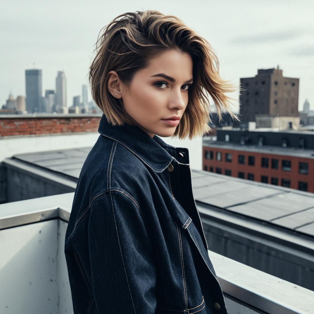 Fashion Model with Tousled Hair in Urban Street