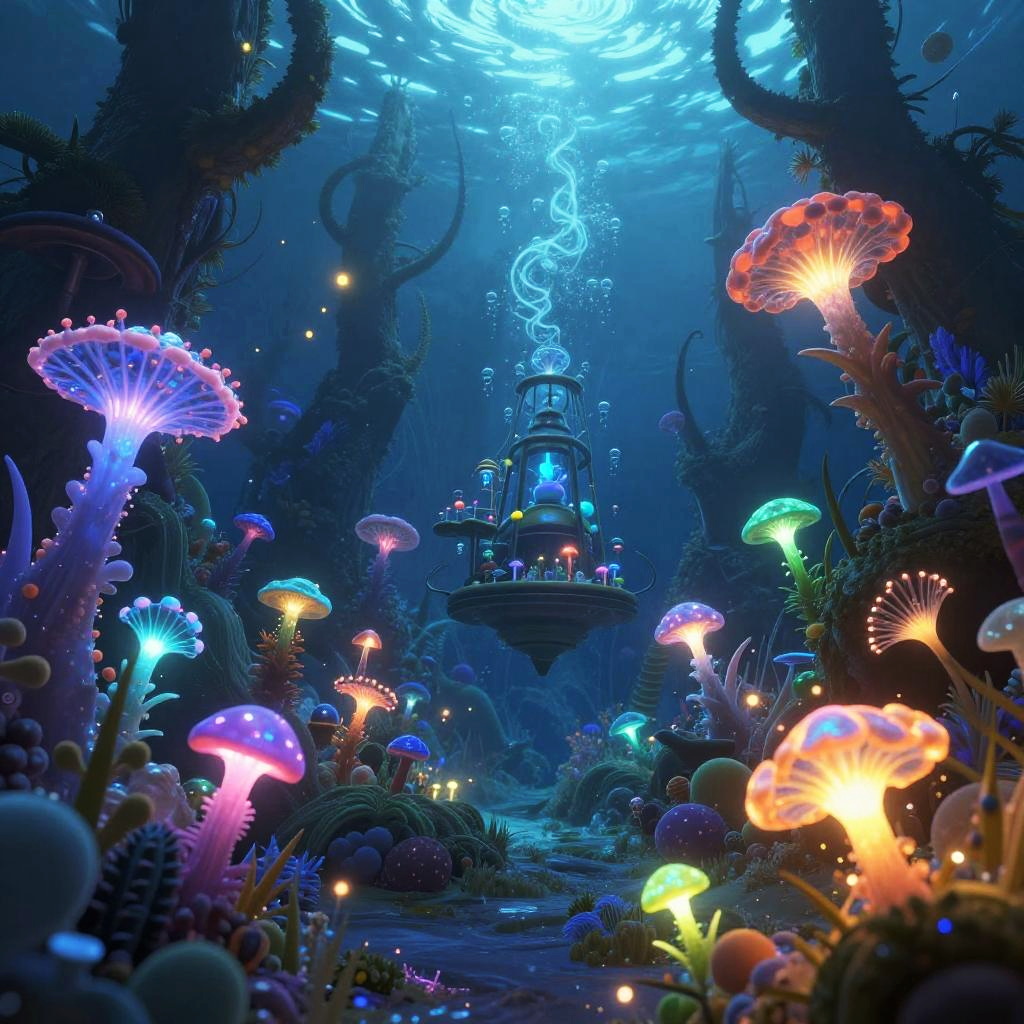 Glowing Crystal Kelp Forest Fantasy