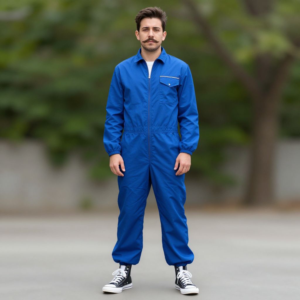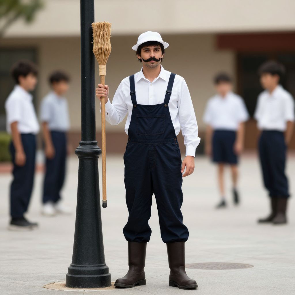 "chimney sweep adult costume, male focus, hat, facial hair, multiple boys, shirt, mustache, outdoors, overalls, boots, white shirt, full body, lamppost, blurry, beard, blurry background, standing, collared shirt, holding, solo focus, pants, looking at viewer, building Realistic photo of casual sexy person with pretty face"