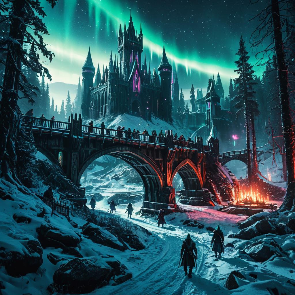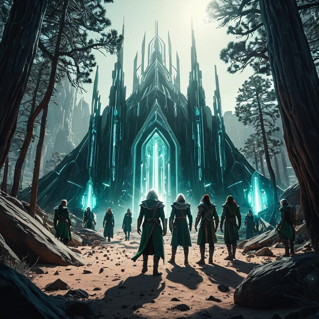 Elves in Cyberpunk Twilight Forest Shrine