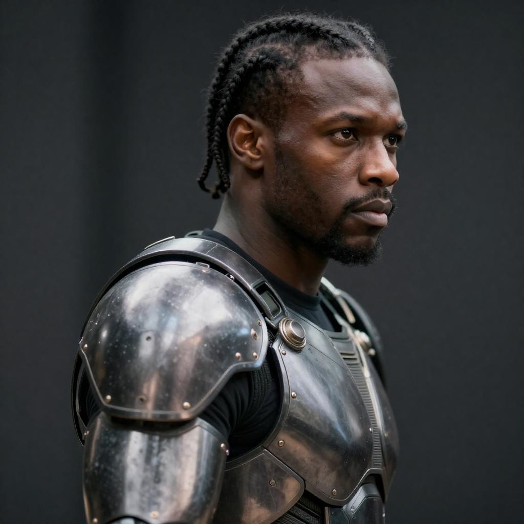Serious African-American Warrior in Futuristic Armor