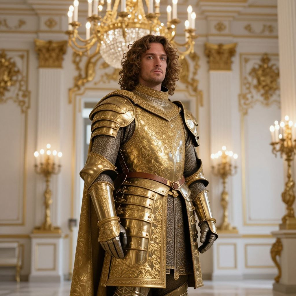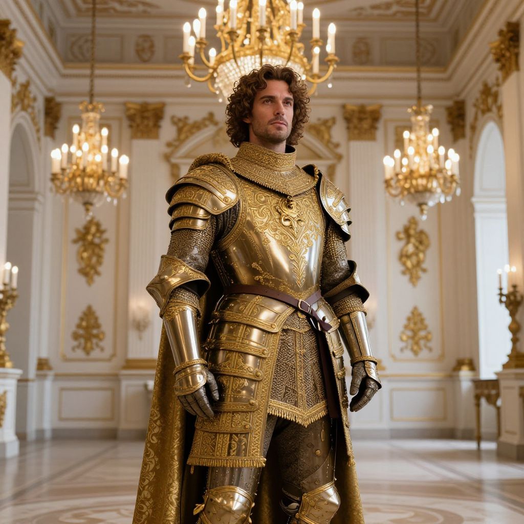 Regal Man in Gilded Medieval Armor