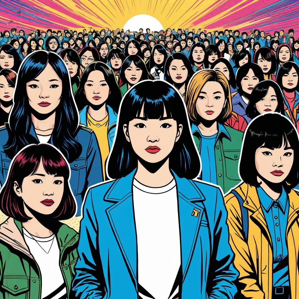 Propaganda-style image celebrating National Indigenous Peoples Day, featuring Indigenous youth, in the style of Norval Morrisseau, 2D flat vector art with vibrant comic book colors, foreshortened composition, unique and engaging
