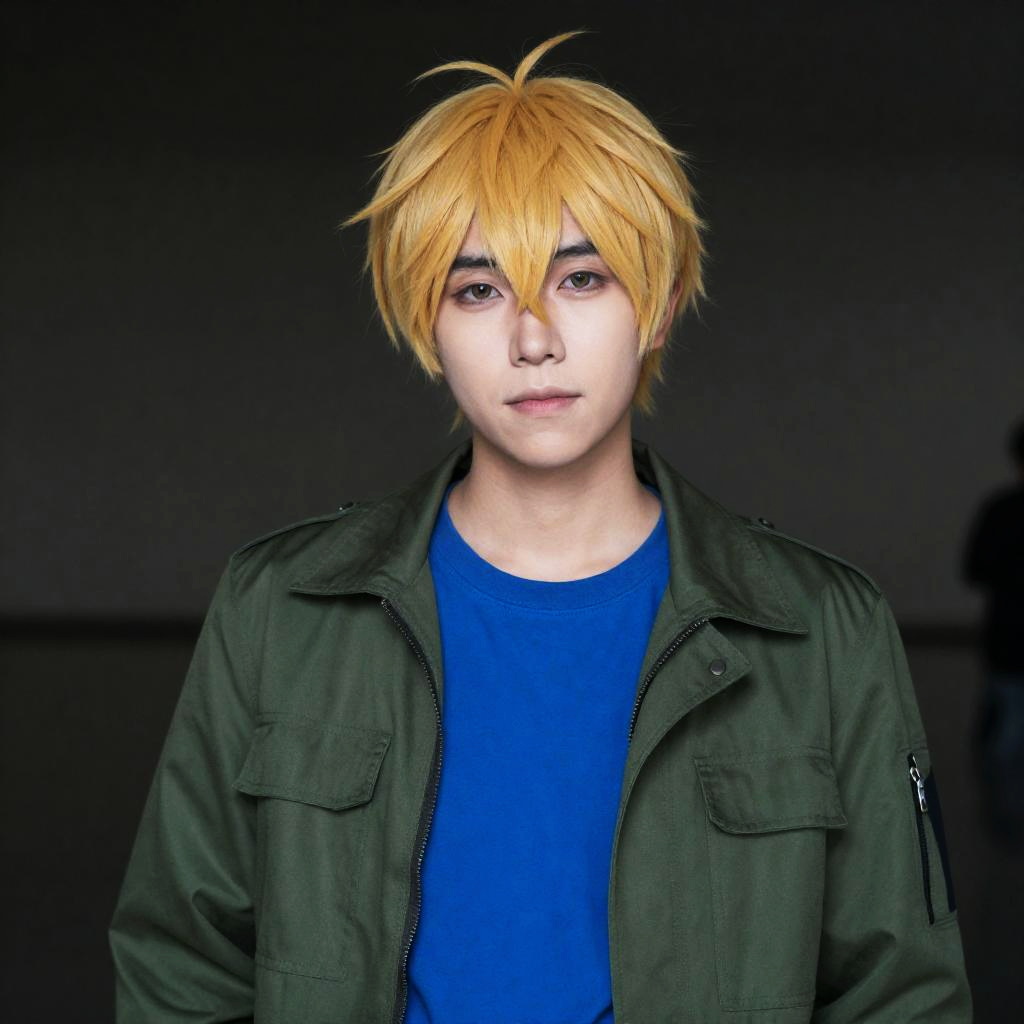 Shaggy Cosplay, man with a blue shirt and a green jacket