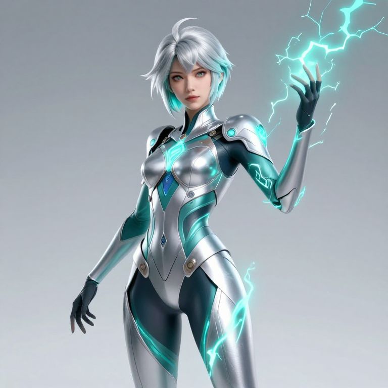 Futuristic Silver-Teal Lightning Woman