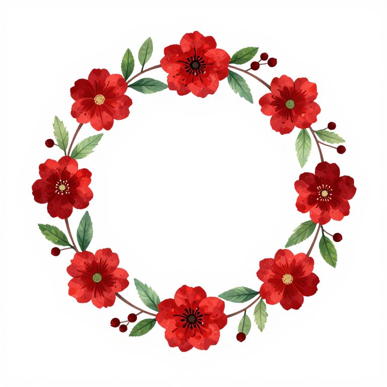 Vibrant Red Floral Wreath Design
