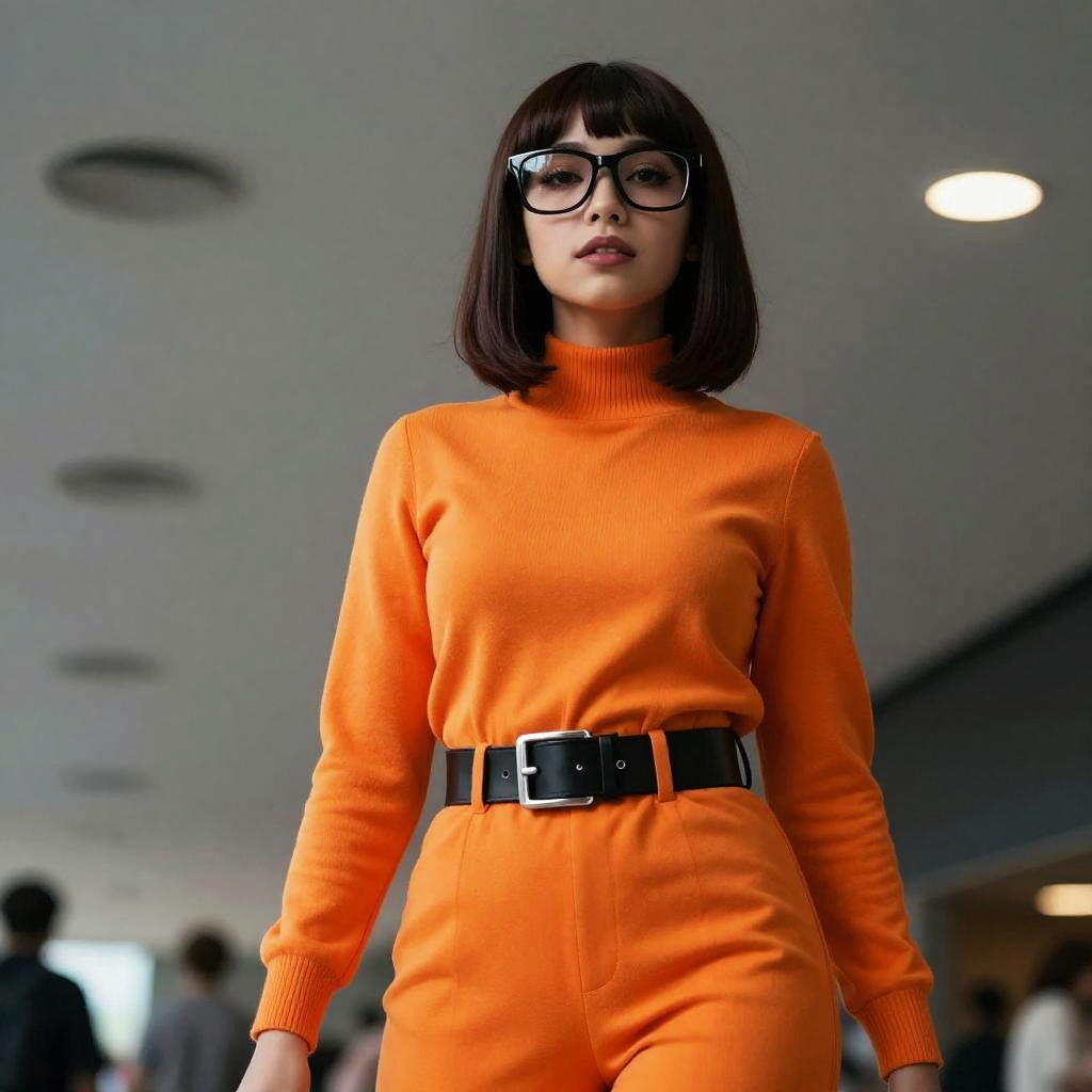 Dramatic Low-Angle Velma Cosplay Shot