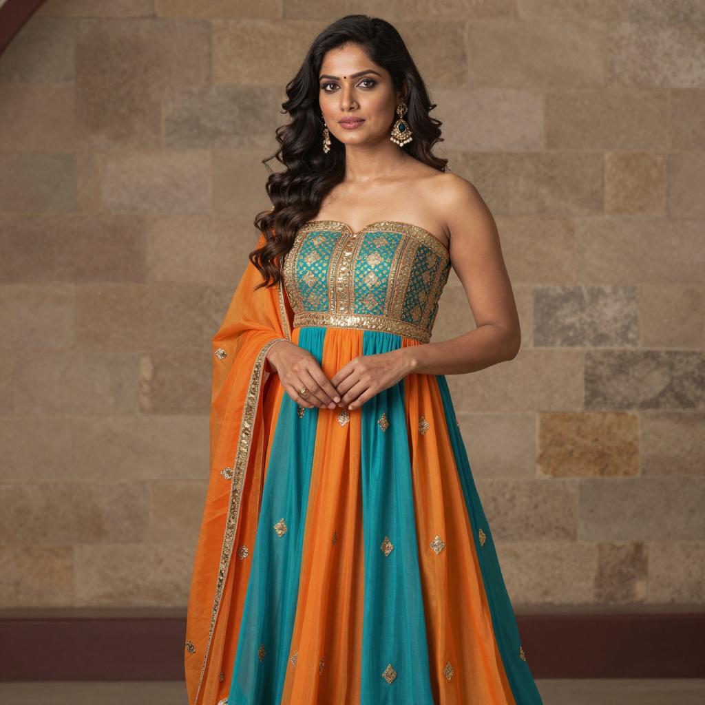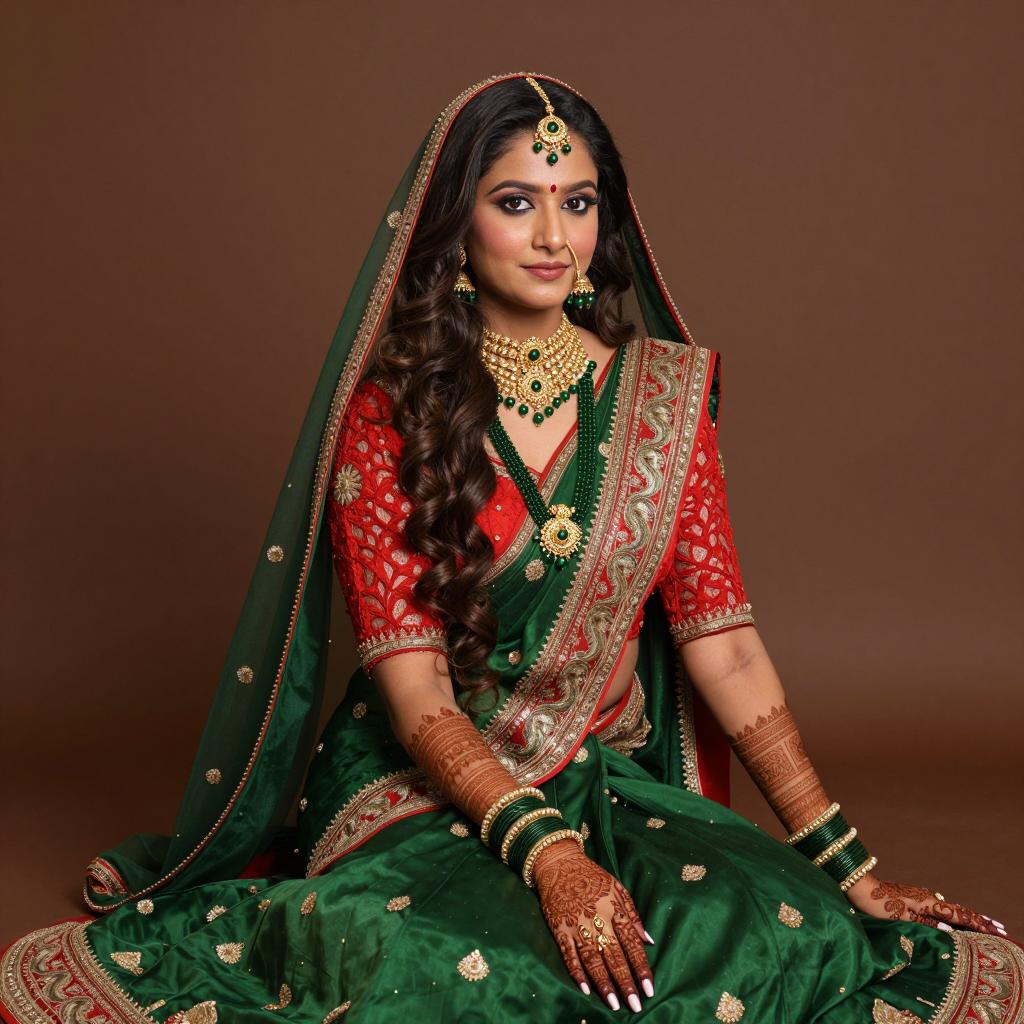Plus Size Indian Woman in Traditional Dress on Balcony