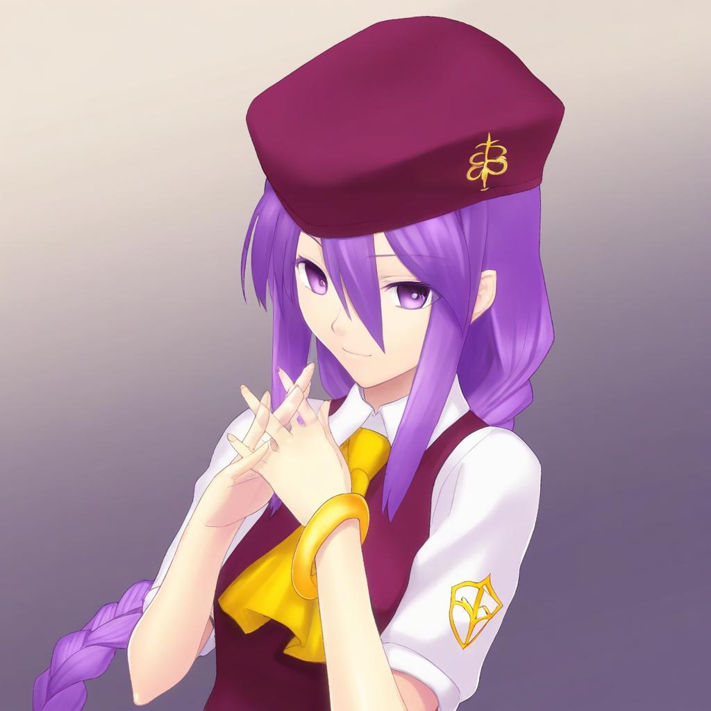Sion eltnam atlasia, tsukihime, 1girl, purple eyes, purple hair, very long hair, long hair, single braid, bracelet, beret, by artist sakurai energy, leet