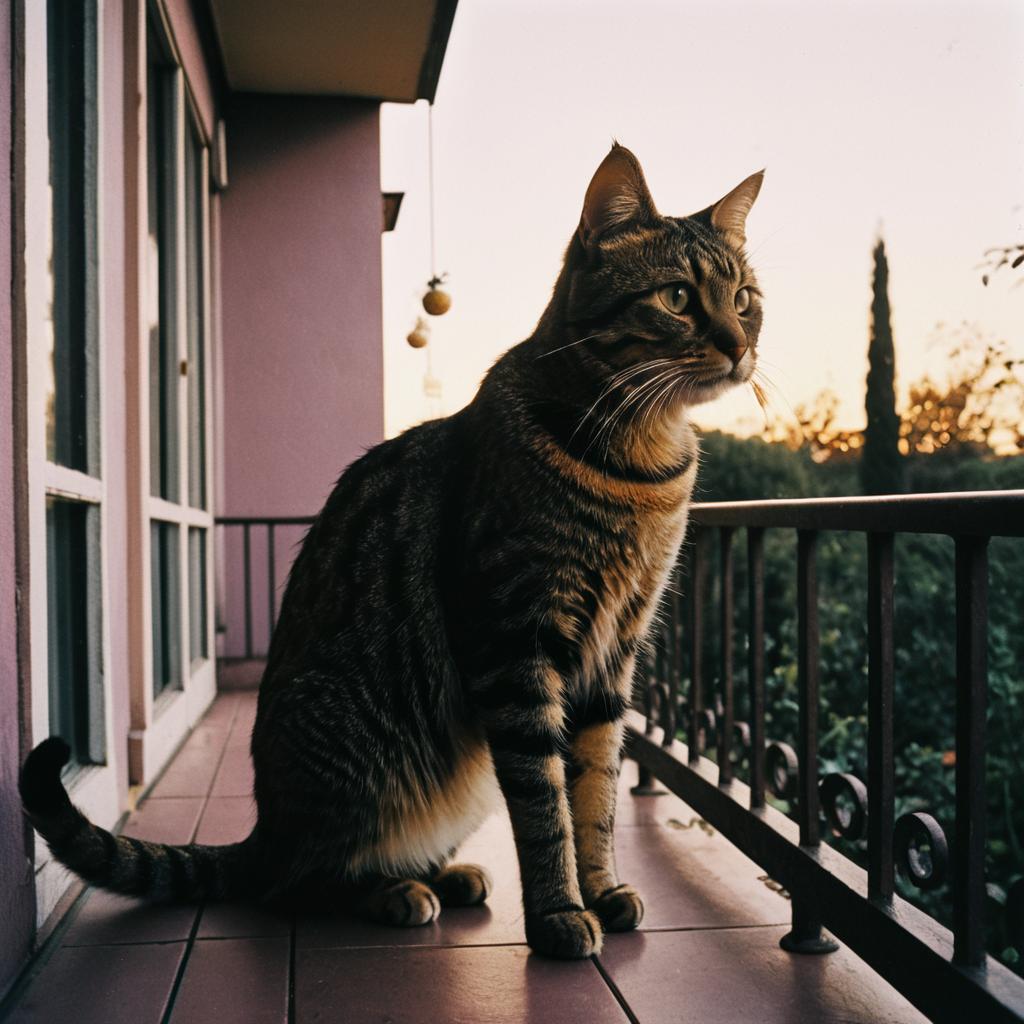 Tabby Cat on Urban Rooftop Terrace