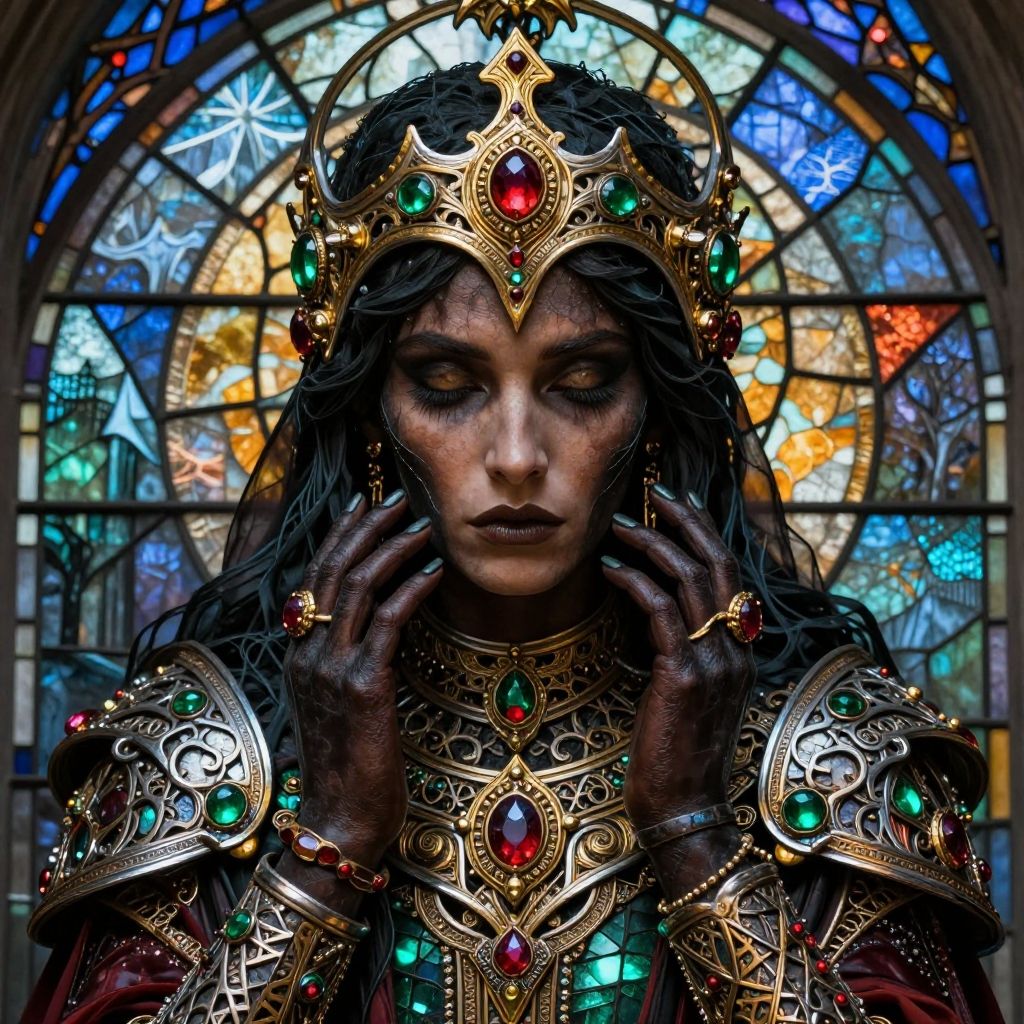 . and ebony and gold and silver and . and emerald and ruby and . and . ornament of Kelsinko Ranger Deborah Azzopardi, natural, shimmering, vibrant, gothic, rpg, 1400ad, ultra detailed, detailed, immersive, reminiscent of high fantasy RPG games, HD, masterpiece, best quality, hyper detailed, super realistic, perfect face, perfect hands, award-winning, professional, breathtaking, linquiveradreary Glacierhorrible weatherstained glass style . vibrant, beautiful, translucent, intricate