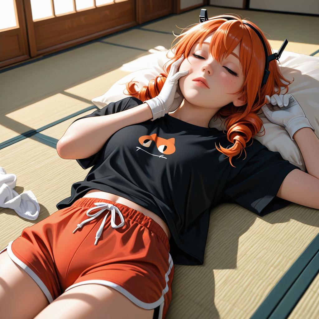 Anime Girl with Orange Hair Sleeping