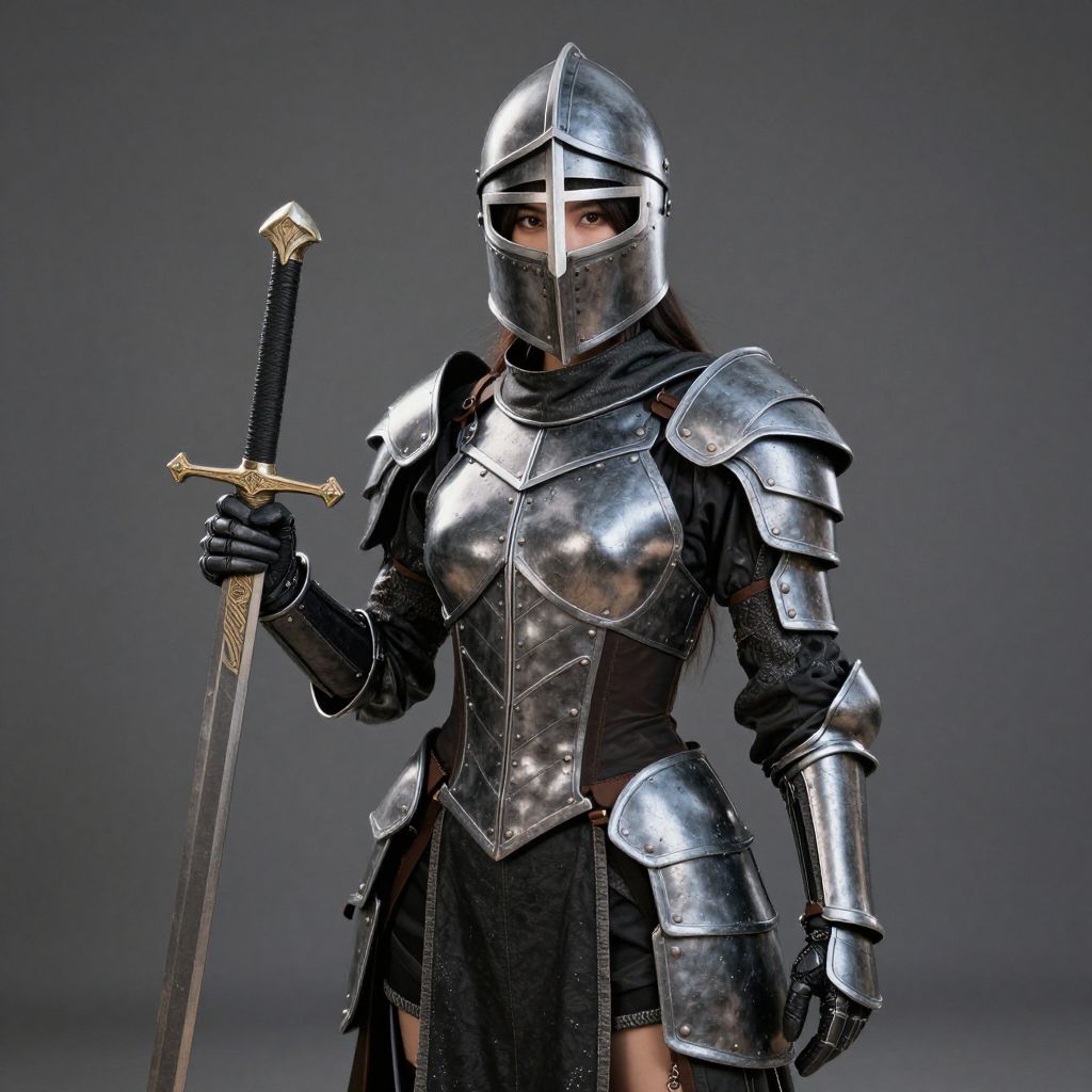 Warrior Maiden Costume, a woman in a costume with a helmet and a sword
