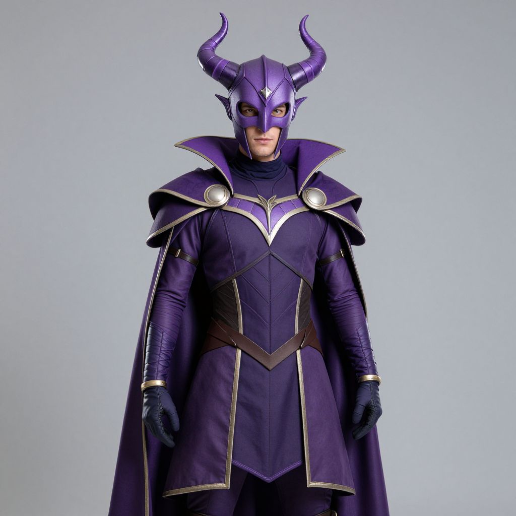 Purple Hero Costume, dressed in purple with horns and a purple cape