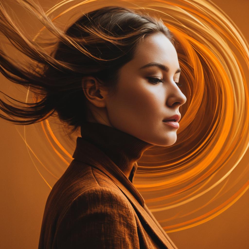 Contemporary portrait with multiple exposures, ghosting effect, overlapping visuals, surrealist figure, vibrant color scheme, motion blur, urban theme