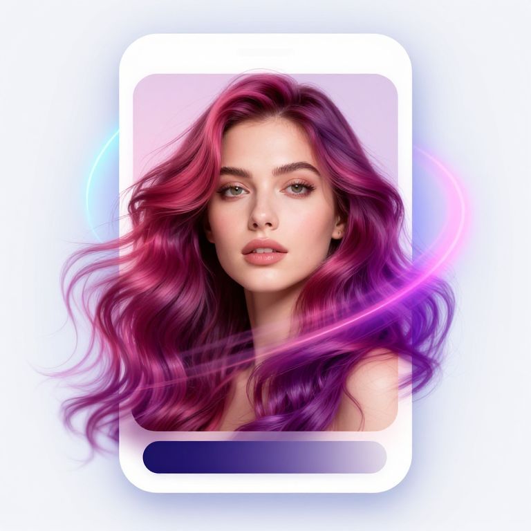 Change hair color online free dynamic interface, vibrant digital palette swirling around a realistic female portrait, soft lighting, sleek modern UI elements, futuristic style with neon accents, highly detailed hair strands, user-friendly digital transformation experience