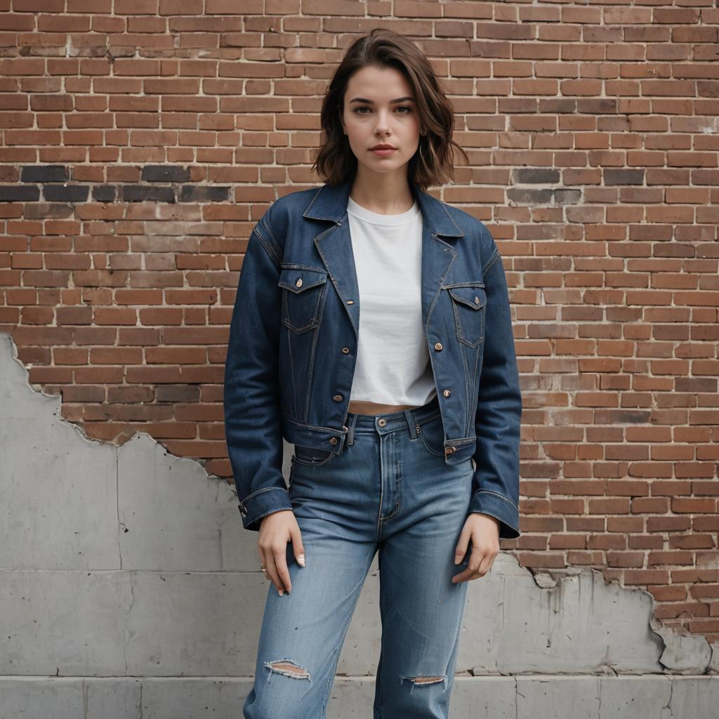 Woman in Denim Jacket and Low Rise Baggy Jeans