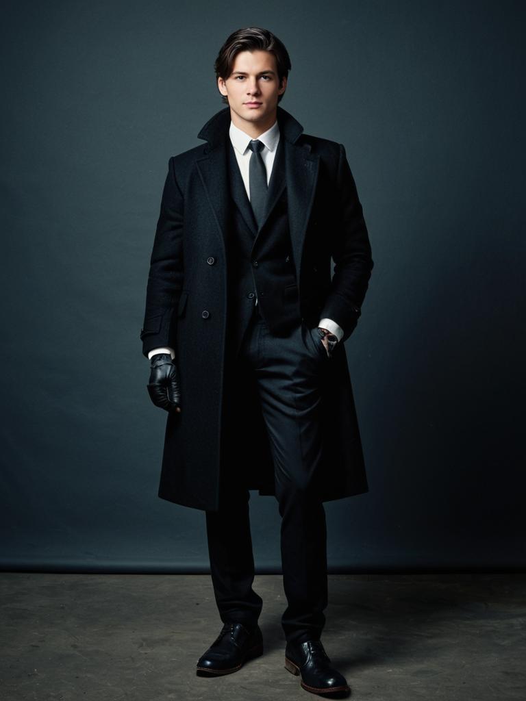Man in Themed Outfit, full-body costume photo with matching details --sref 1387