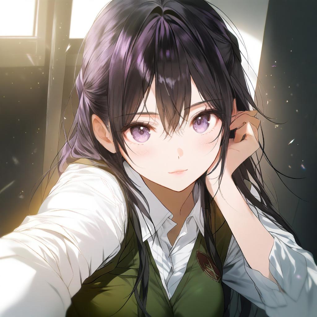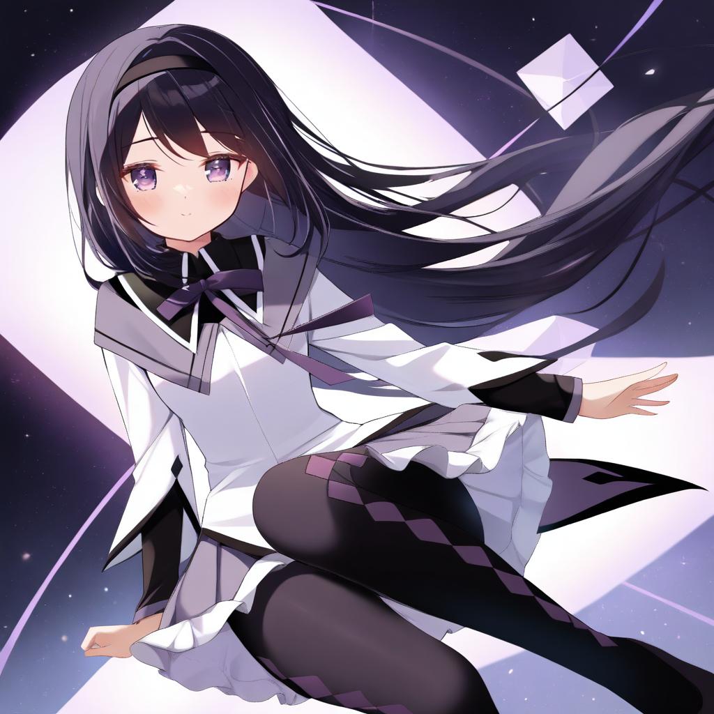 Akemi homura (magical girl), mahou shoujo madoka magica, 1girl, purple eyes, black hair, long hair, hairband, black pantyhose, argyle clothes, long sleeves, magical girl, magical girl, by artist ikazu401, animagine