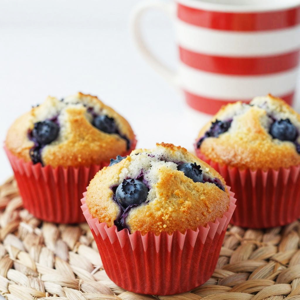 Fresh Blueberry Muffins with Red Liners