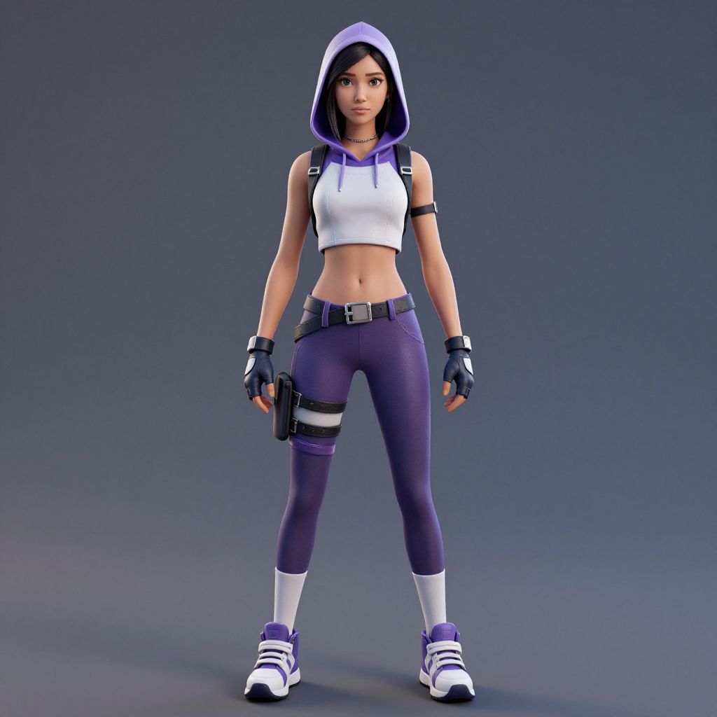 Adult fortnite costume, solo, hood, gloves, fingerless gloves, 1girl, realistic, full body, shoes, standing, hood up, sneakers