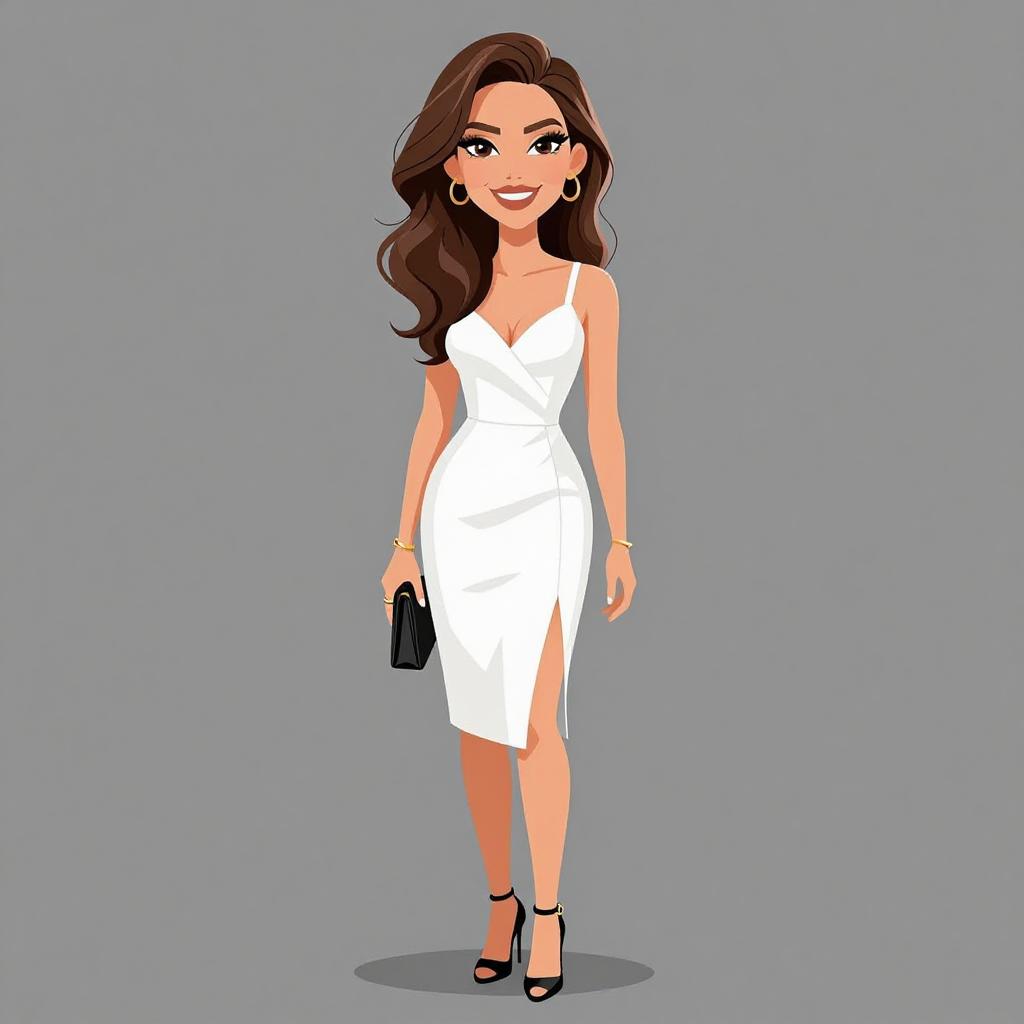 Woman with pretty face and pretty hair. smiling Woman, chic elegance, black sleeveless bodycon dress, plunging halter neckline, knee-length, statement metallic choker necklace, multiple metallic bangles on one arm. --sref 1467