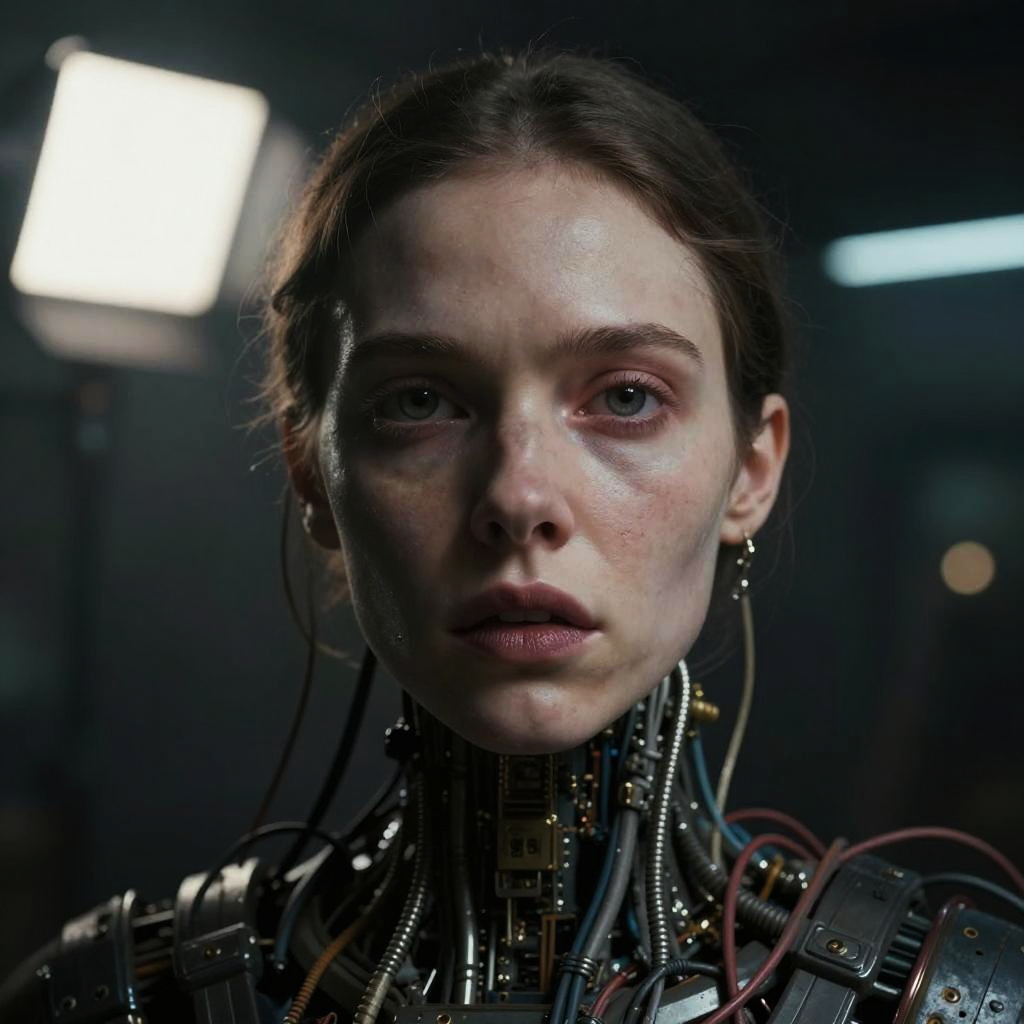 Futuristic Cyborg Woman with Neural Branches