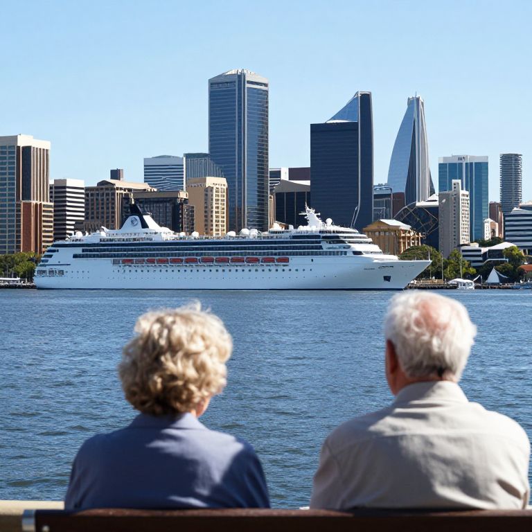 Captain Cook Cruises view of perth skyline with elderly couple