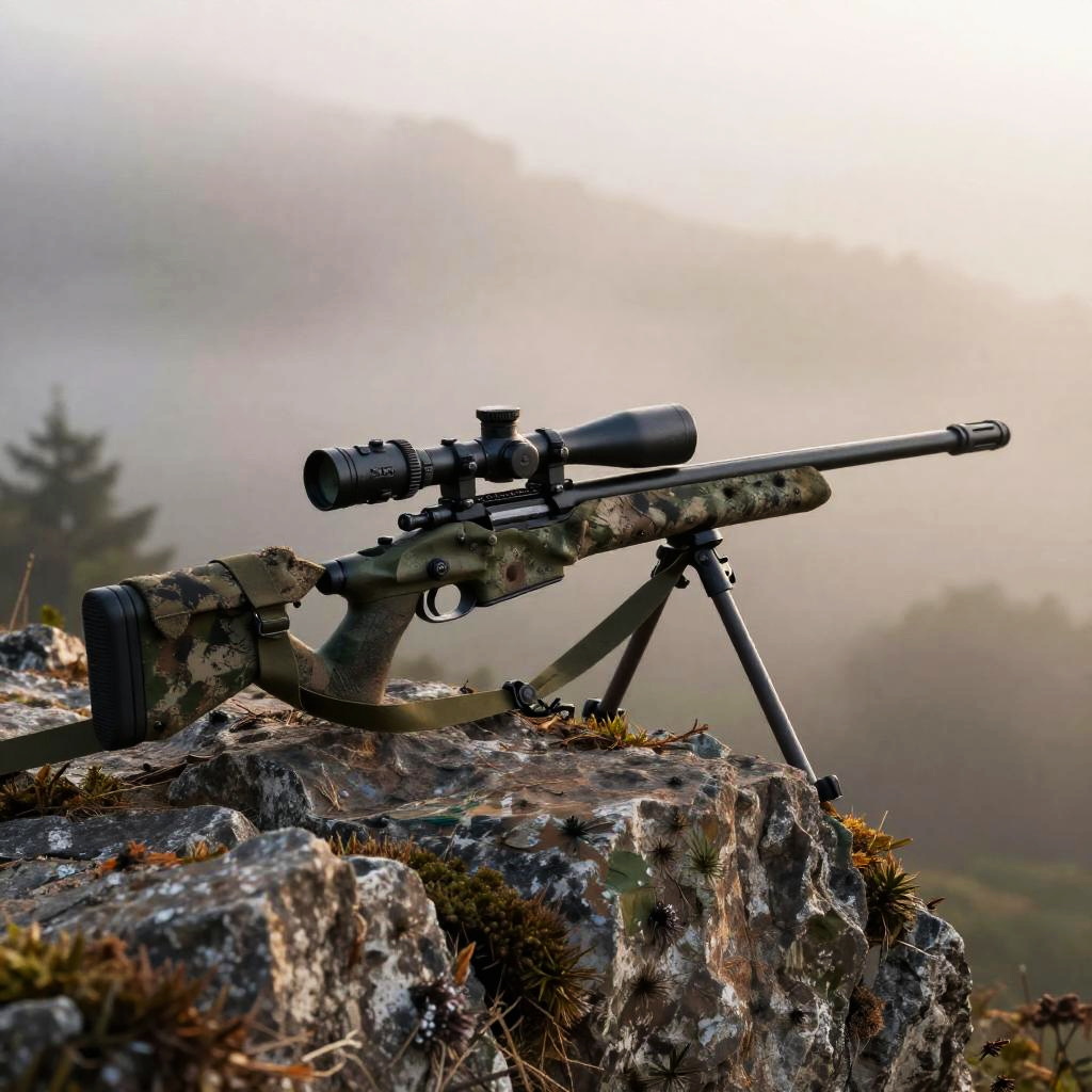 Bullpup Sniper Rifle Over Misty Valley