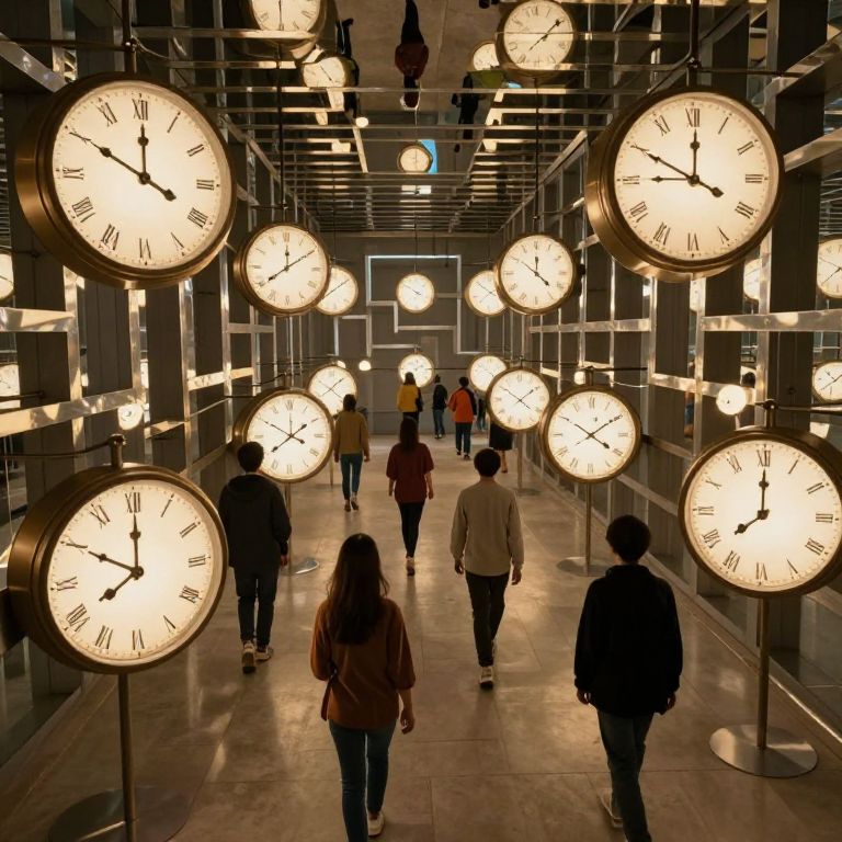 Clocks tick backward inside a mirrored labyrinth, distorting players who walk in but emerge years younger.
