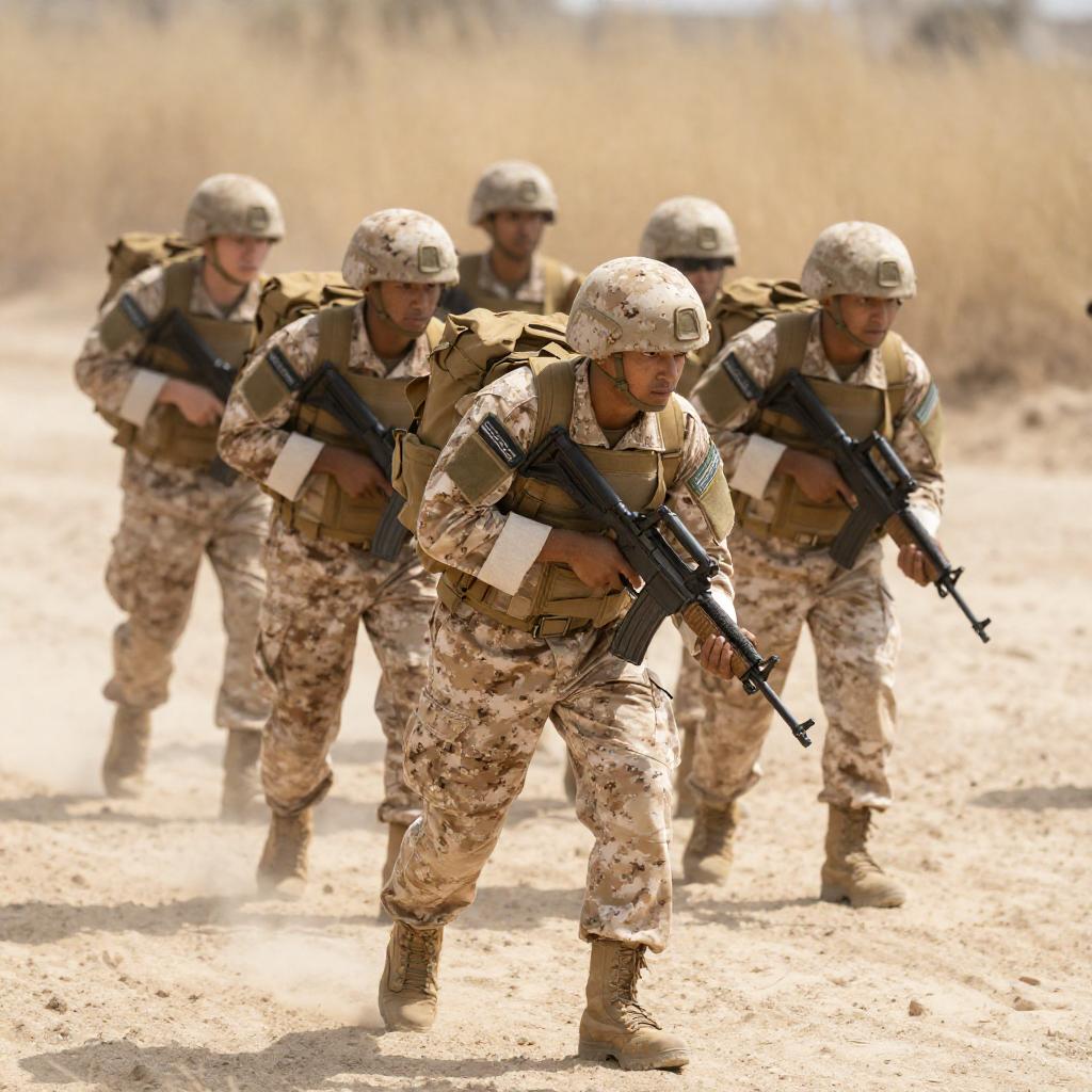 Photograph of a soldier in full combat gear with a helmet and visor, standing beside a large, yellow, industrial vehicle. The soldier is aiming a weapon at the vehicle, which has visible bolts and a large wheel. The ground is covered in dirt. The image has a high-contrast, yellow-orange filter.