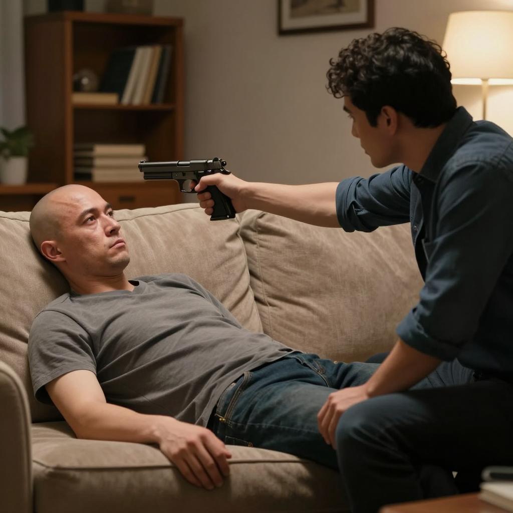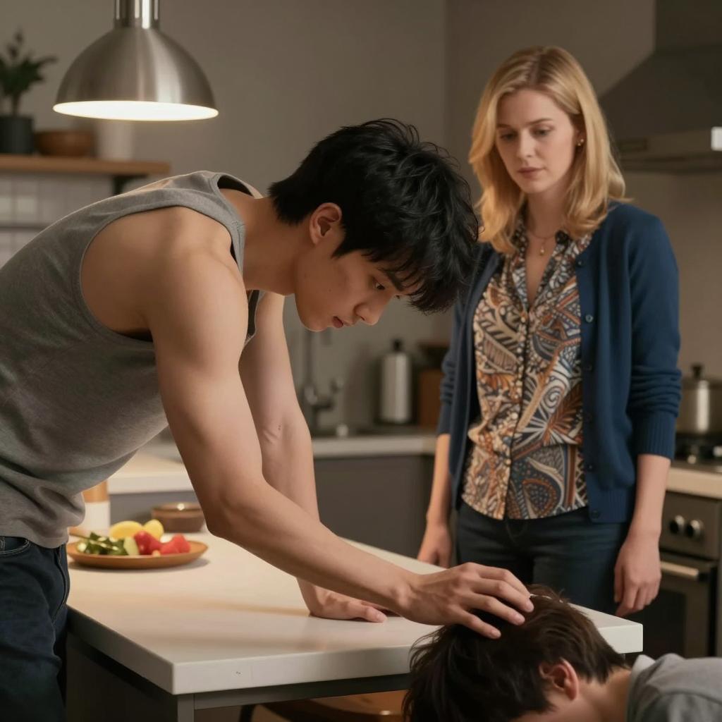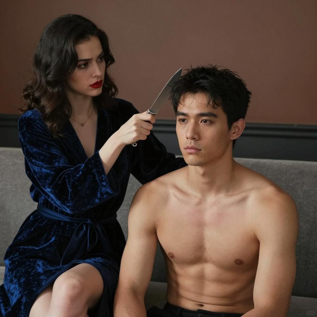 Tense Kitchen Standoff with Dramatic Flames