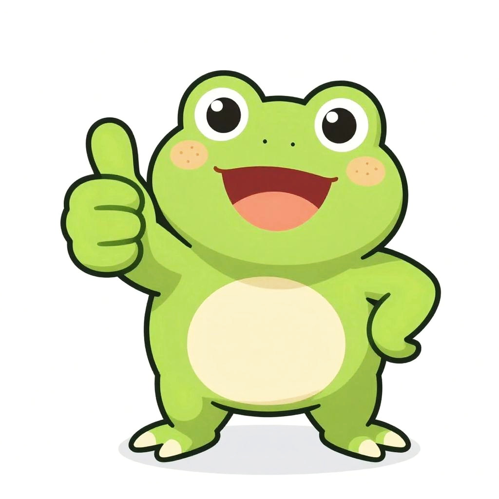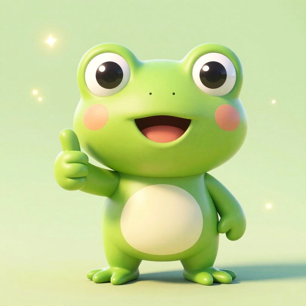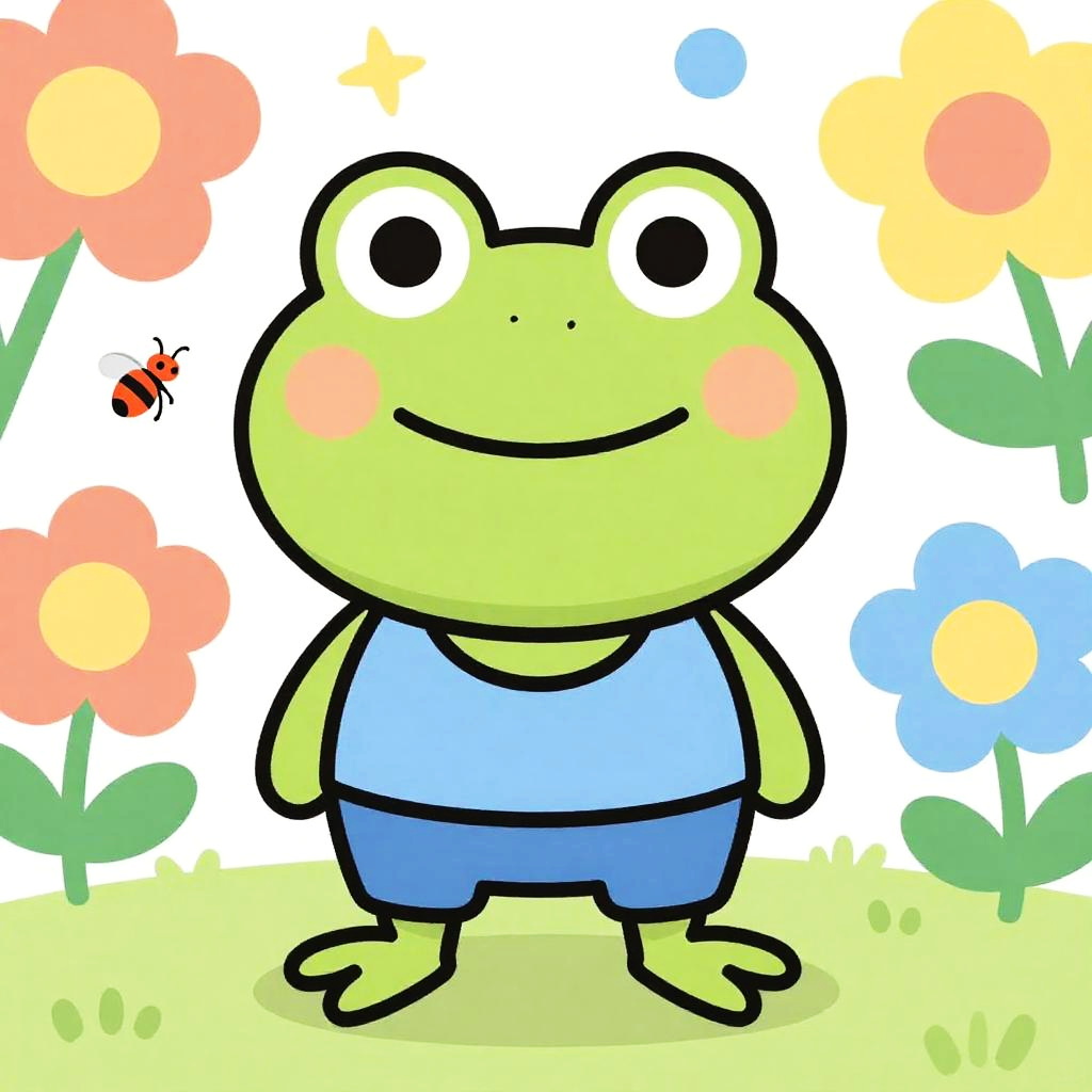 Friendly small green tree frog, minimalist line and wash art, front-facing with big sparkling eyes and a warm smile, leafy rainforest canopy after gentle rain, playful pose with little paws up, fluttering leaves and gentle rim light, vibrant and cheerful atmosphere, soft gradients and clean outlines, high detail texture, crisp rendering, childlike wonder, balanced composition.