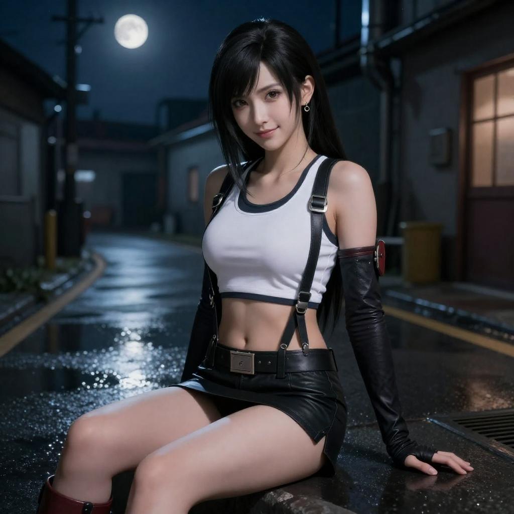 Realistic Tifa-Inspired Night Fight Portrait
