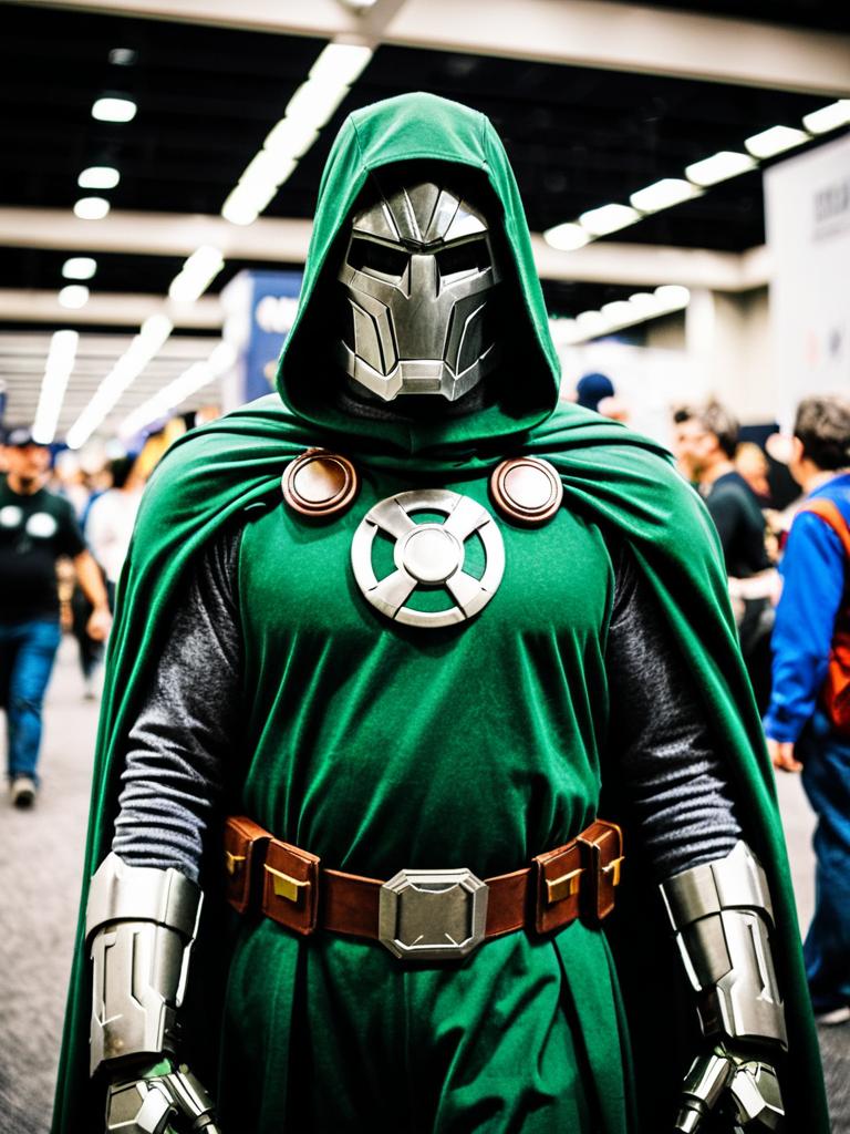 Man in Doctor Doom Costume, candid cosplay portrait at comic convention